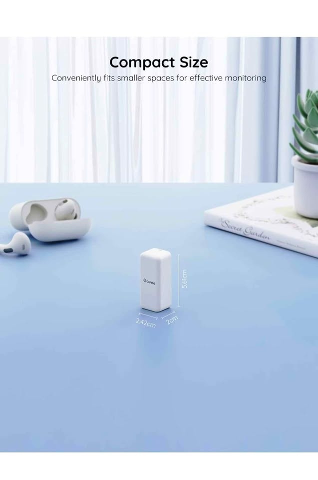 Smart Govee temp and humidity sensors with a WiFi gateway. Great for keeping track of your home's environment. Connects to phone app for real-time readings. Comes with one gateway and three sensors. Sensors are compact, about 5.61cm tall, 2.42cm wide, and 2cm deep.