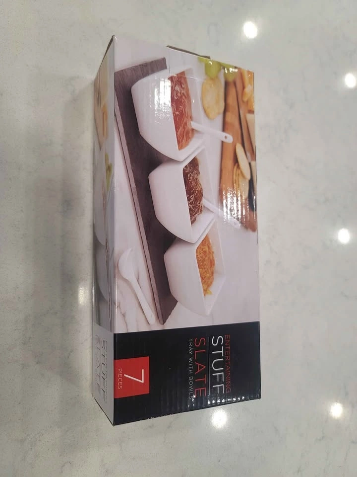 Entertaining Serving Slate Tray with Bowls – 7 Piece Set