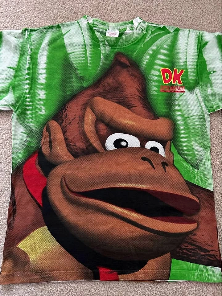 Brand new, authentic Donkey Kong Country All Over Print Super Nintendo t-shirt. This is a rare collectible item in pristine condition, never worn. One size fits most. Measures 23.5 inches from armpit to armpit and 30 inches in length from collar to bottom hem. Please see photos for details. Serious and reasonable offers will be considered. Public meet-up available in the Warden and 16th Avenue area in Markham.