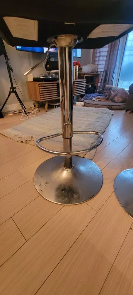 FREE set of two black swivel bar stools. As you can see from the photos, there are some signs of wear and tear on the seats. Otherwise, they're still sturdy and functional! Located downtown, Cityplace.