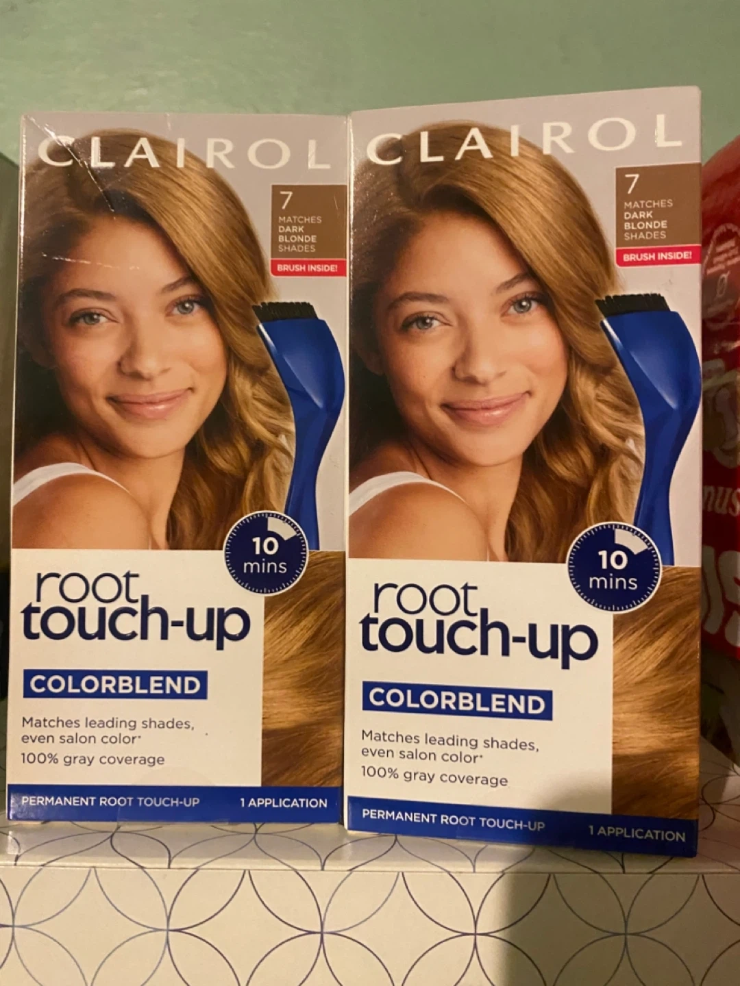 Clairol Root Touch-Up ColorBlend permanent hair dye. This formula matches leading shades for even salon color. It provides 100% gray coverage and is designed for a 10-minute processing time. Each box contains one application.