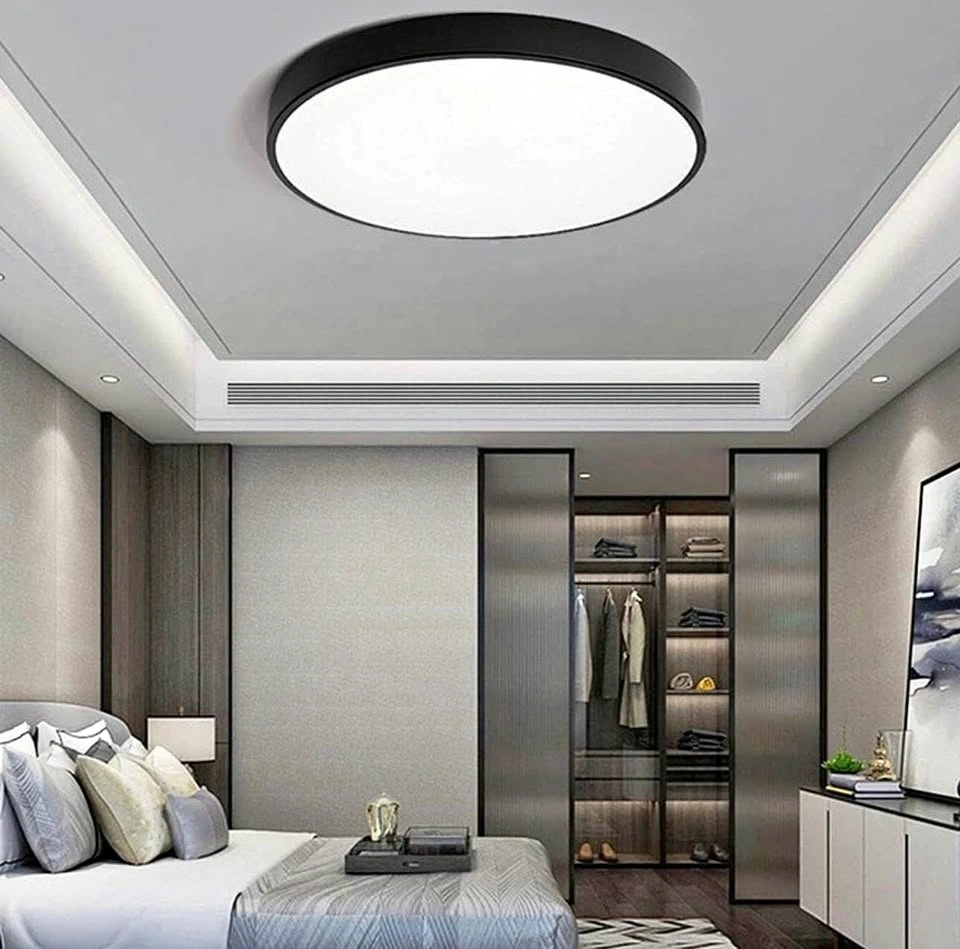 This modern and simple round ceiling light features a strong metal structure and a durable acrylic lampshade. The LED light source provides uniform, soft light with a simple, elegant design that matches most interior styles, bringing vivid and clean light to your living environment. It's designed for easy installation, with all hardware included; even beginners can install it quickly with just a screwdriver. This energy-saving LED light offers high-quality illumination equivalent to a 150W incandescent bulb, saving over 80% on energy. Suitable for living room, bedroom, kitchen, bathroom, hallway, garage, warehouse, office, staircase, hotel, shop, meeting room, factory, and home.