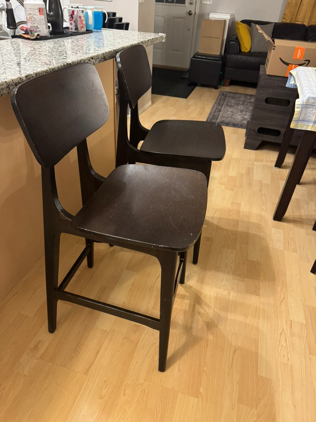 Dark Brown Wooden Counter Stools (Set of 2)