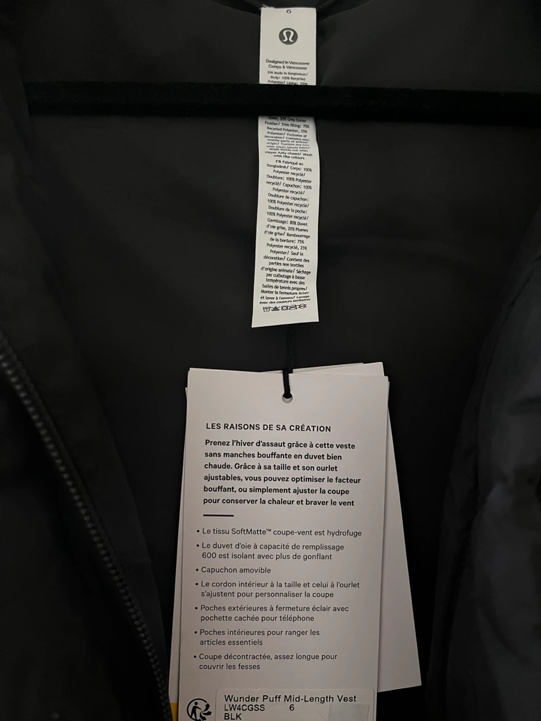 Lululemon Black Puffer Vest with Hood