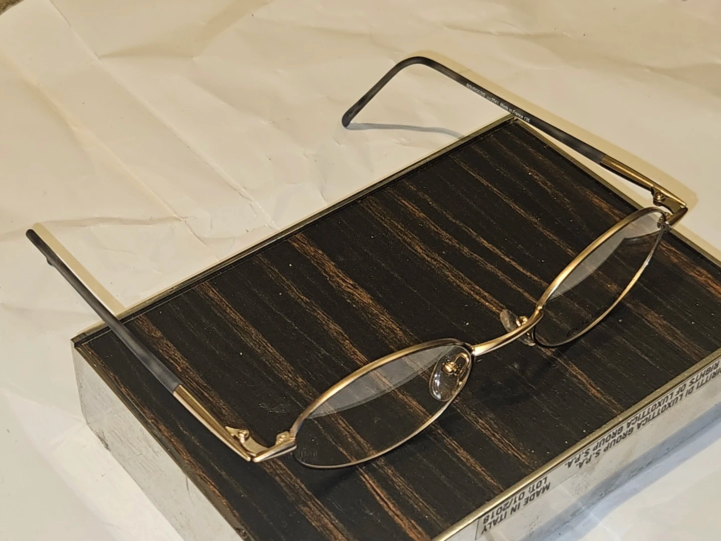 These are Bourjois eyeglasses with gold-toned metal frames and black detailing on the arms. They were made in Italy. They're a classic oval shape, perfect for everyday wear. It's designed to fit any Prescription