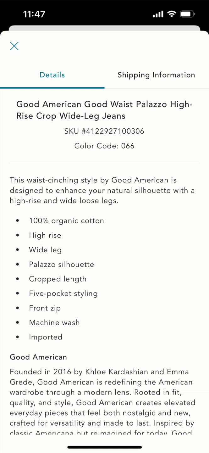 BNWT Good American Good Waist Palazzo Jeans US6 (fits 4)