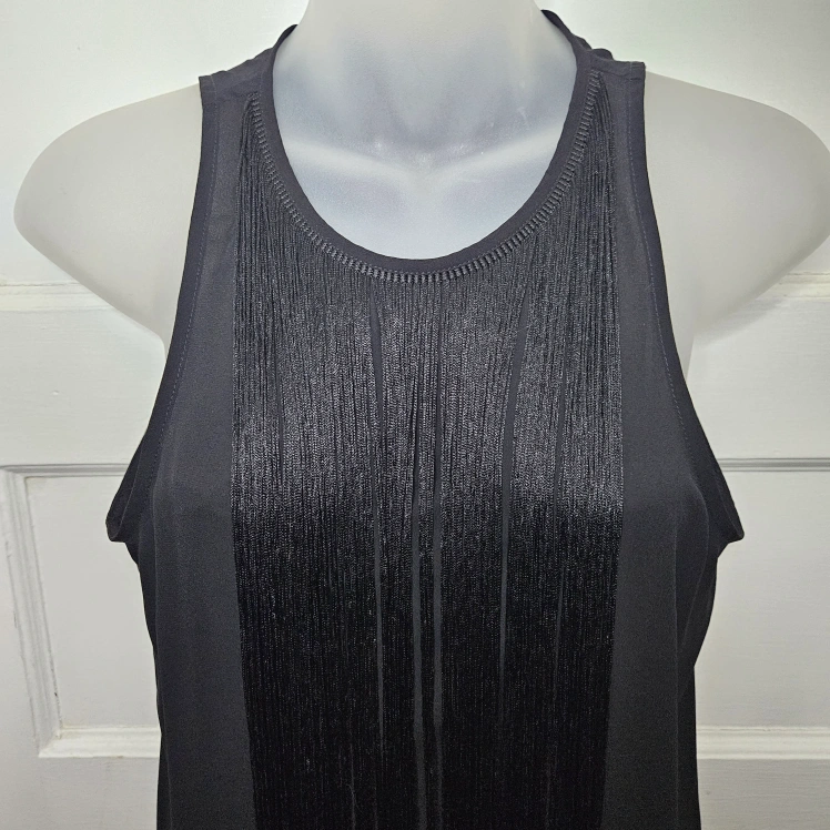 Express Black Tunic Tank with Long Black Fringe Sz XS