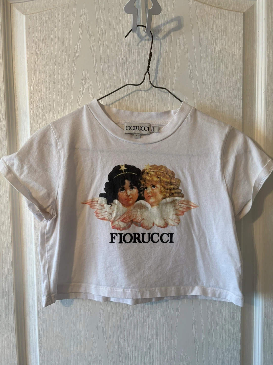 Buy & SellFiorucci Cropped T-ShirtFiorucci Cropped T-Shirt$45White Fiorucci cropped t-shirt with cherub graphic. It's made of 100% cotton. SFH. Asking $50ConditionLike newSizesBrandFiorucciWHERE TO MEETCheck LocationView MapSELLERJenna MarieOld S150 reviews0 chats·0 favorites·5 viewsSEND CHAT TO SELLERHi Jenna Marie! I’m interested in your listing.Hi Jenna Marie! I’m interested in your listing.Get the Karrot app to chatSign In to chat