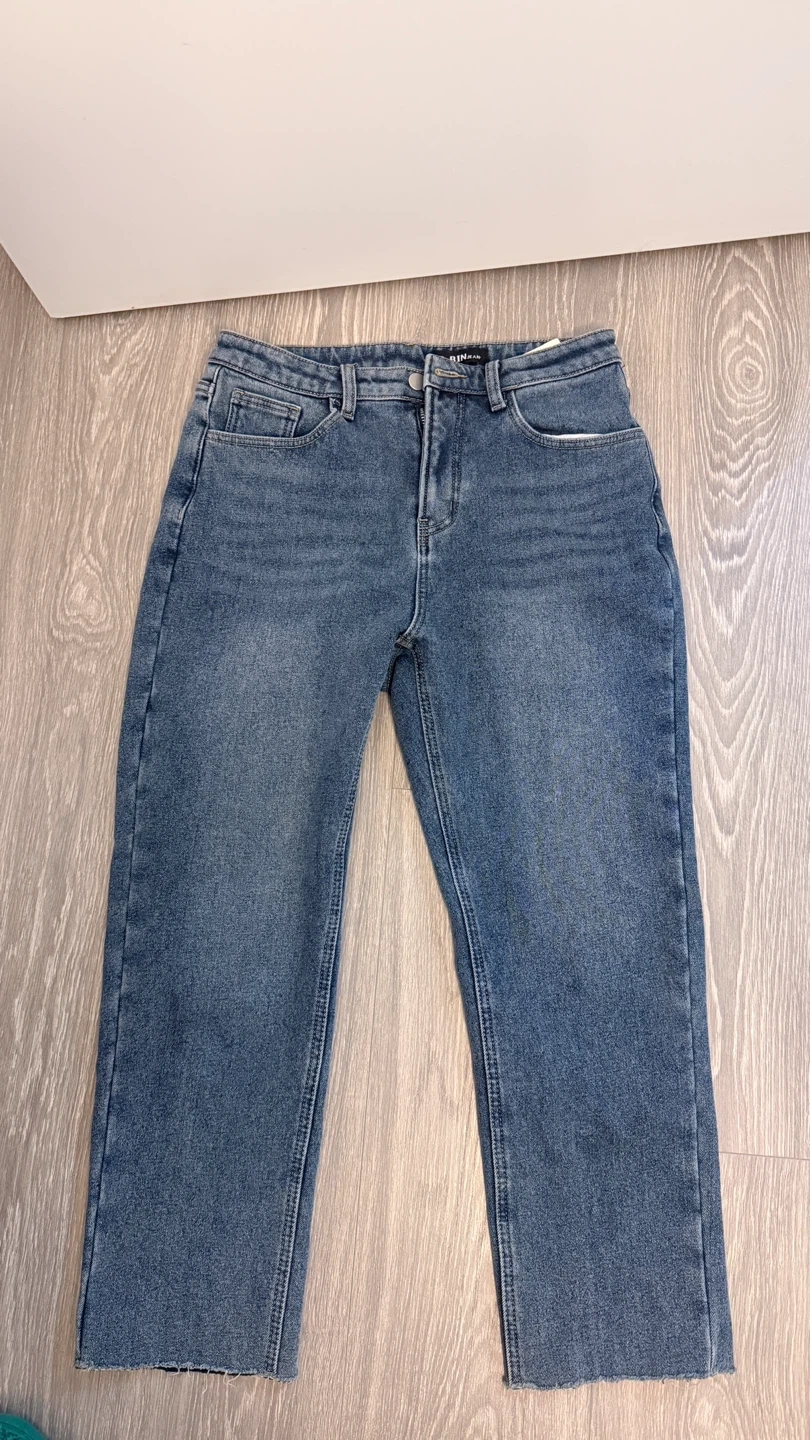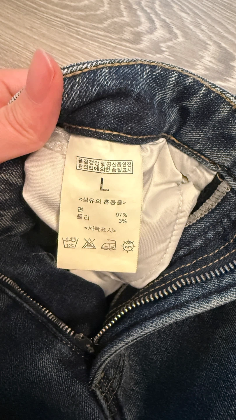 These S-BINJEAN denim jeans come in a size L. They are made of 97% polyester and 3% polyurethane.