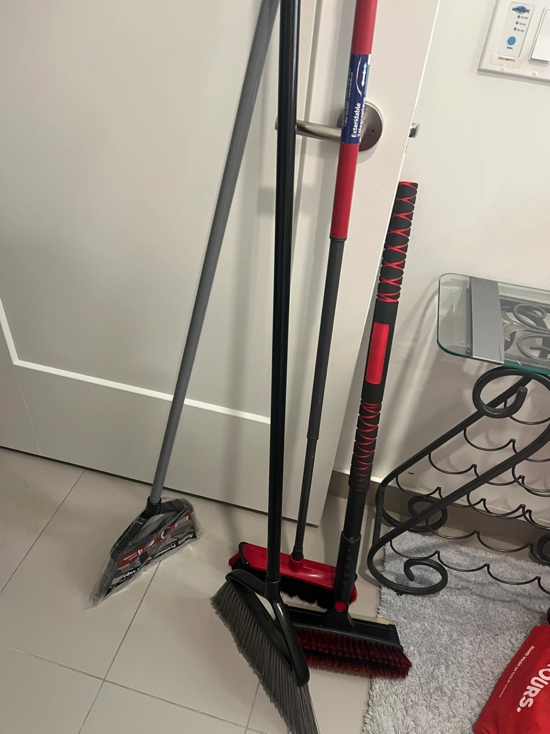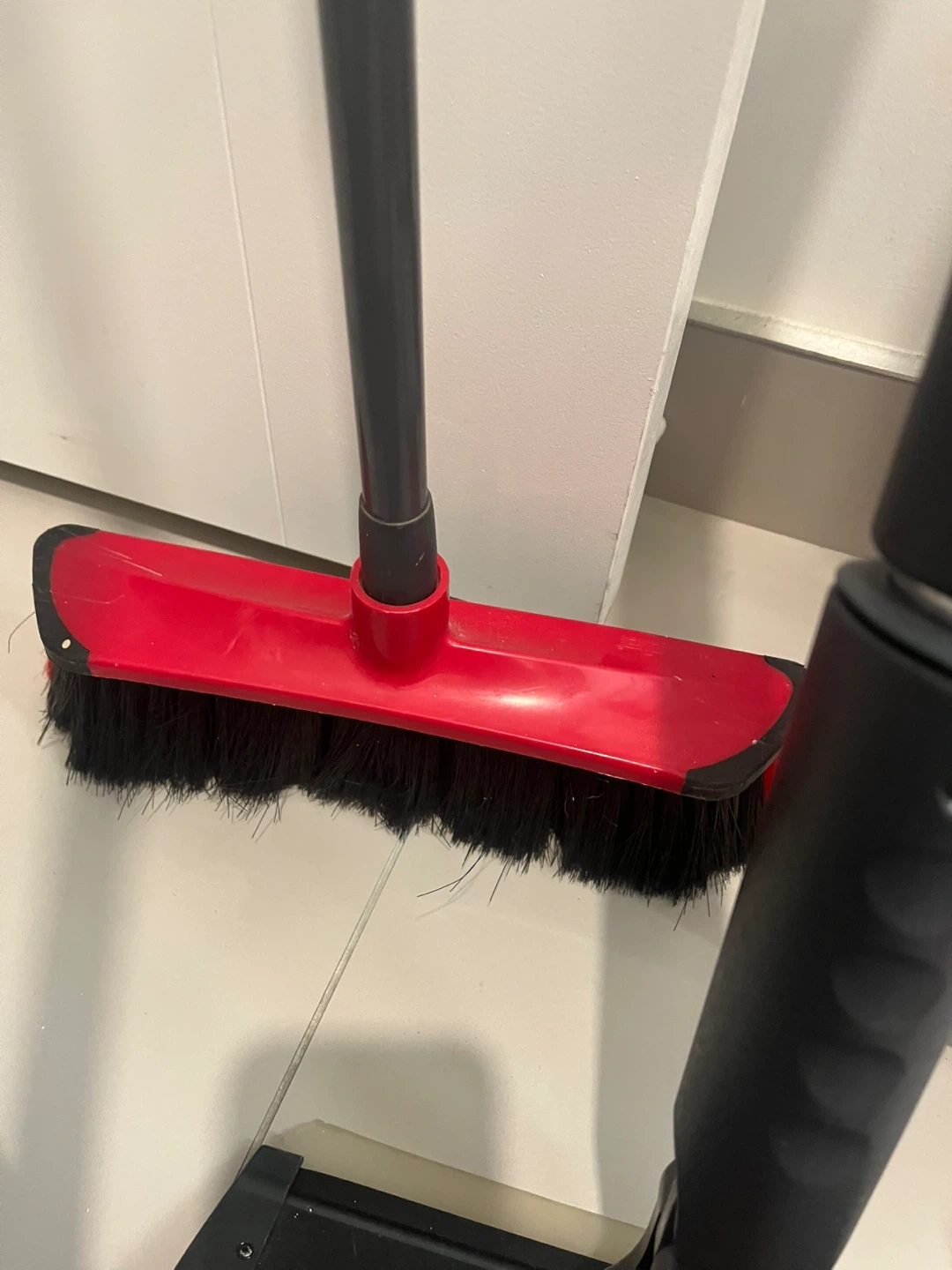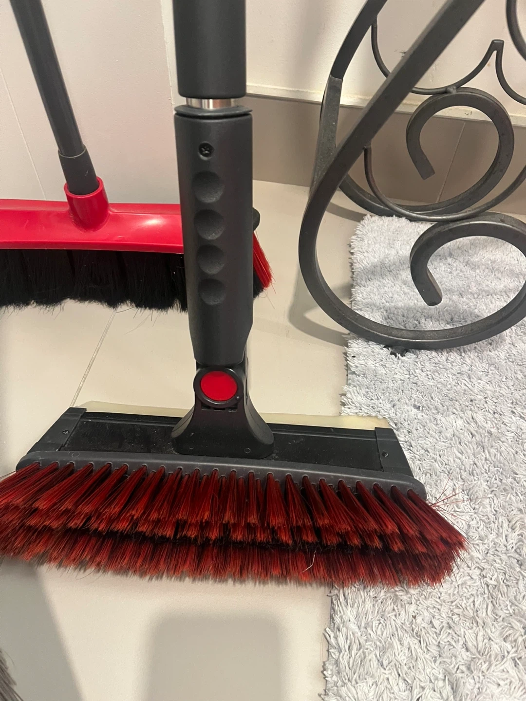 Kodiak Premium 4-piece angle broom and dustpan set. Bristles are grey and handle is silver. Designed for effective sweeping and easy debris collection. This set is great for quick cleanups around the house!
