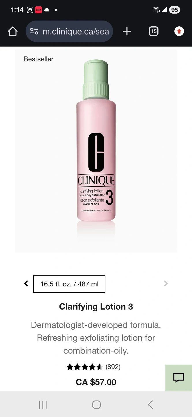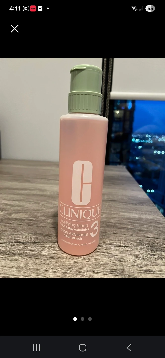 This is Clinique Clarifying Lotion 3, a twice-a-day exfoliating lotion. It's formulated for combination-oily skin. The large 16.5 fl. oz. / 487 ml size is great for regular use.