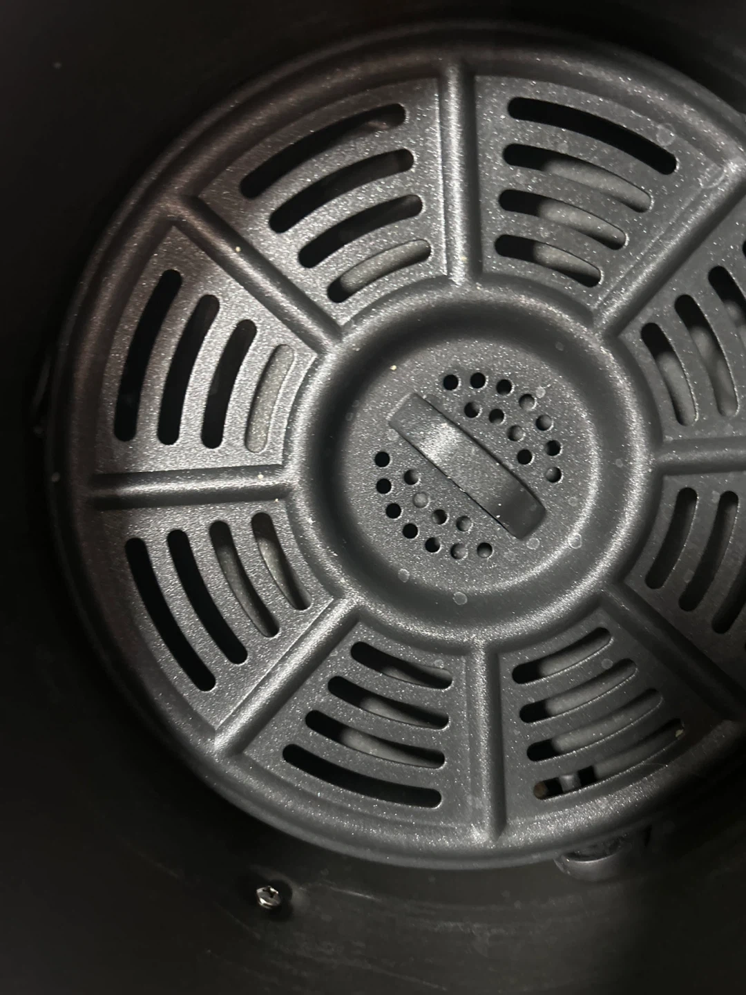 Ninja air fryer, grey model. Includes a black silicone liner accessory for easier cooking and cleanup. Multiple functions available, including air fry, roast, dehydrate, and reheat.