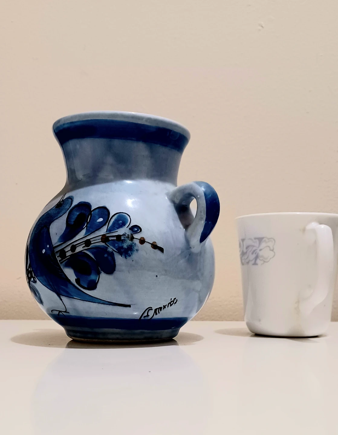 This charming, vintage Tonalá Mexico pottery vase features a beautiful blue bird and floral design, perfect for adding a touch of artisanal decor to your home. This vase is in great shape, showcasing traditional Mexican craftsmanship.