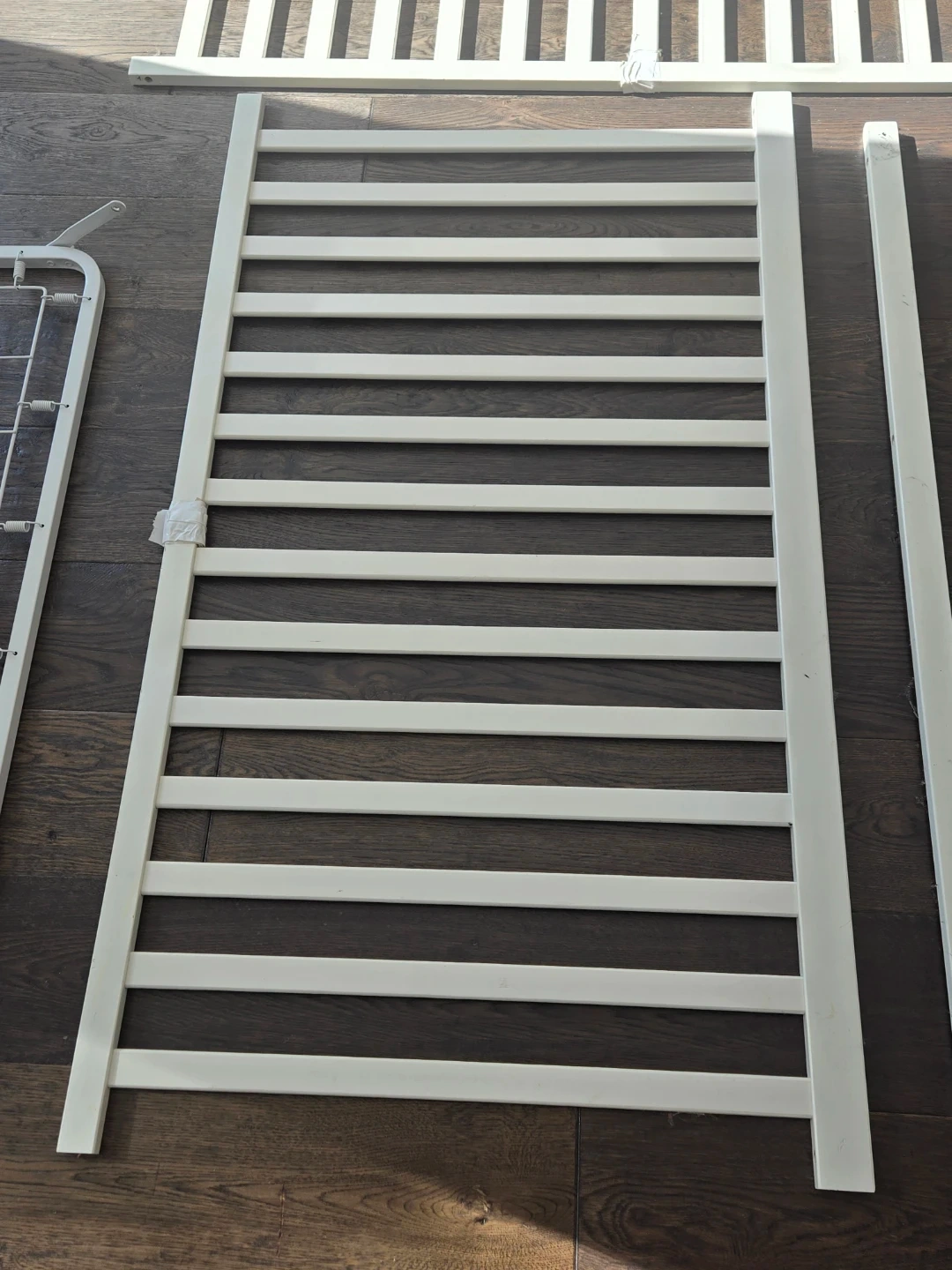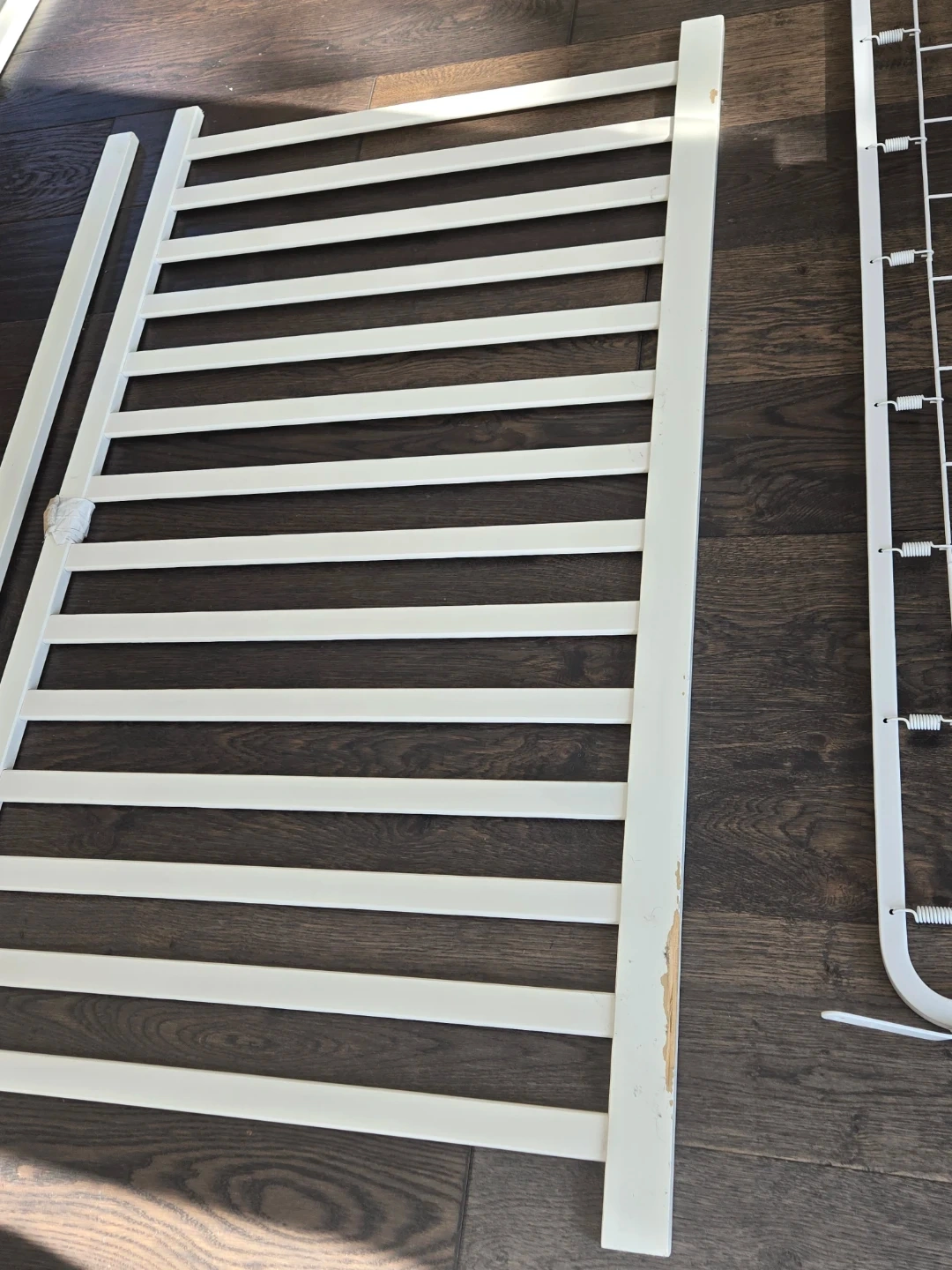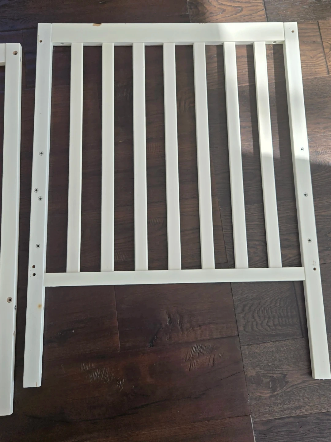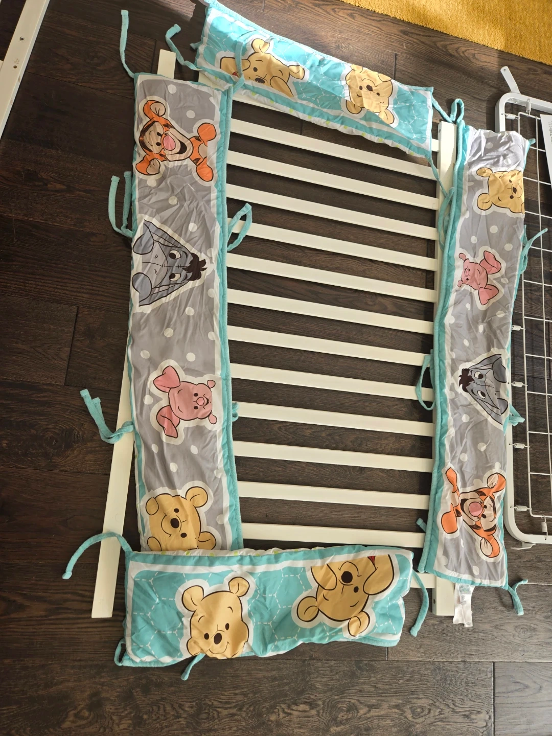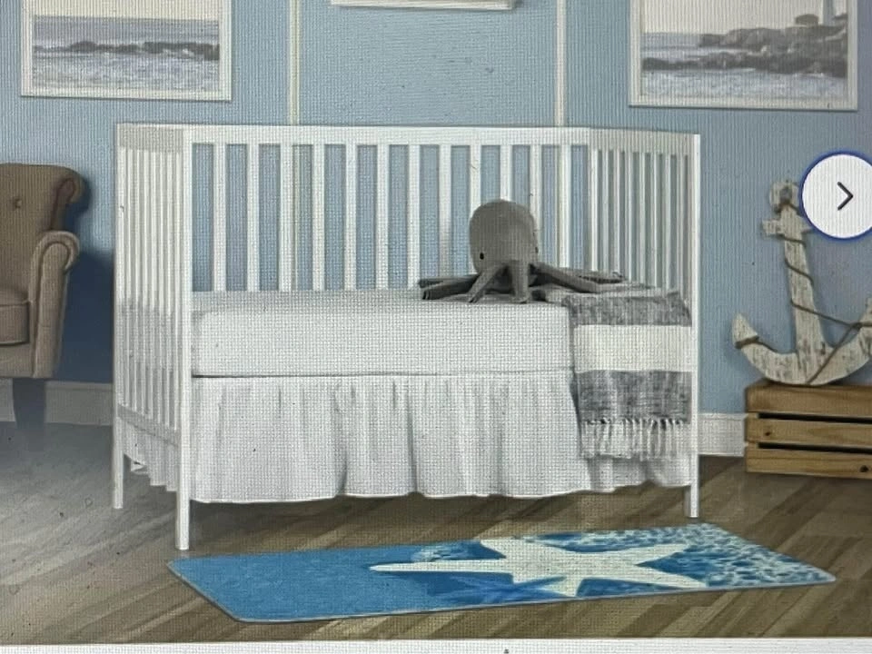 Dream on me 5 in 1 convertible crib. Includes foam mattress, 4 fitted sheets and crib liner. Additional accessory will be needed to convert to a full bed.