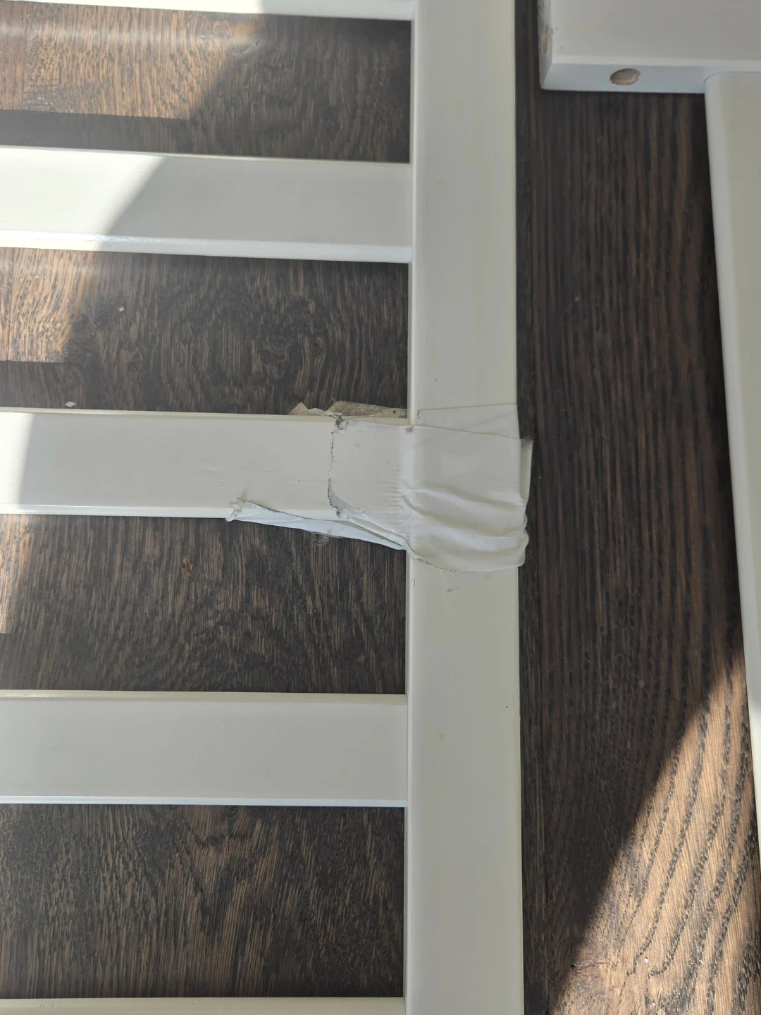 There are some small damages as in the pictures but it is on the side railings and does it impact core functionality