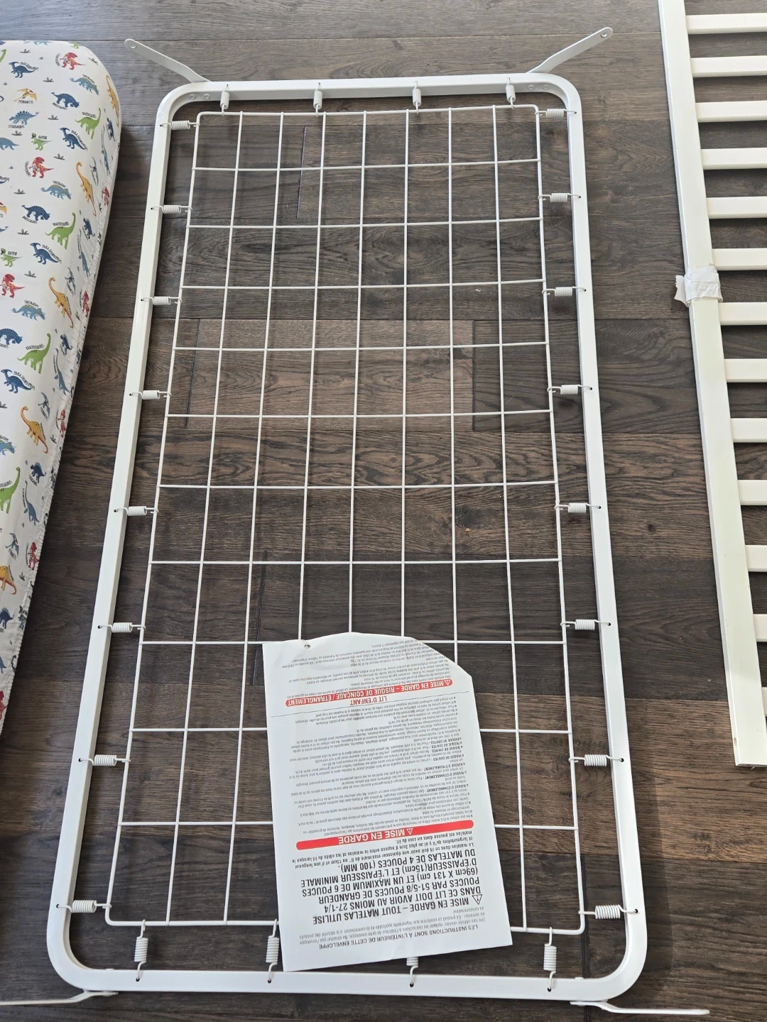 Dream on me 5 in 1 convertible crib. Includes foam mattress, 4 fitted sheets and crib liner. Additional accessory will be needed to convert to a full bed.