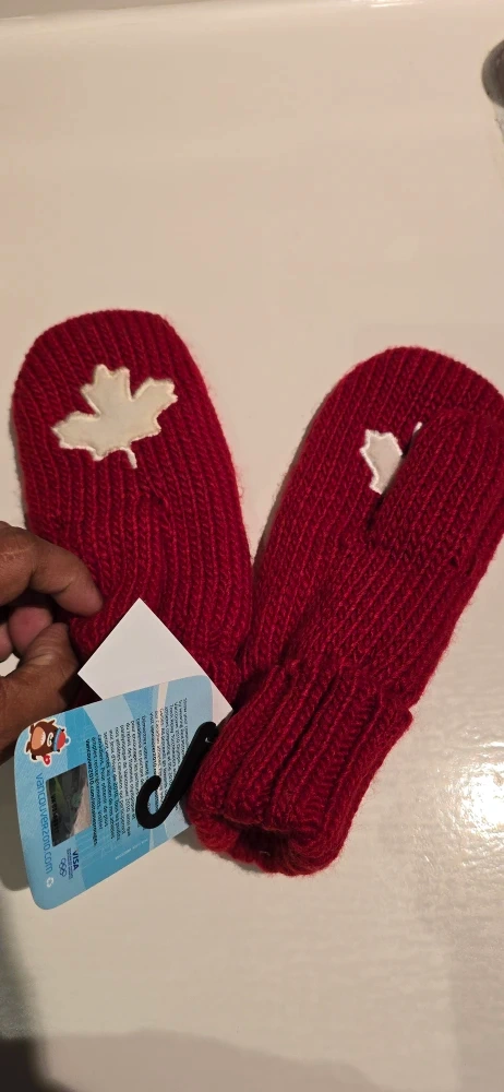 Keep your little one warm with these adorable red mittens! They feature the Vancouver 2010 Olympic logo and a Canadian maple leaf design. Perfect for keeping tiny hands cozy during the colder months
