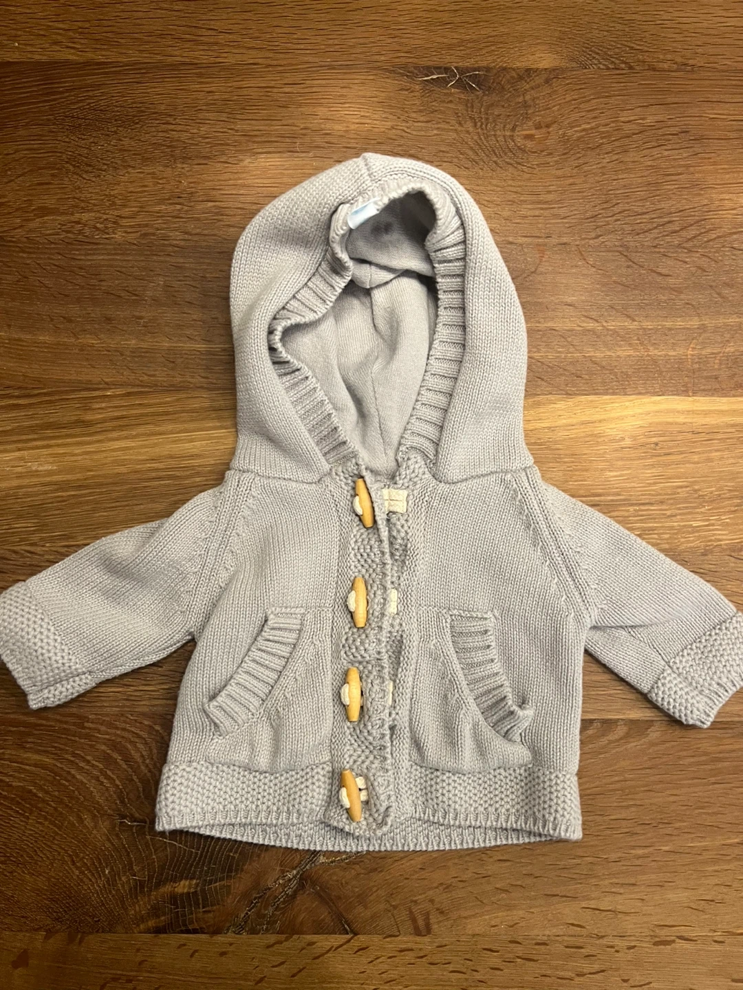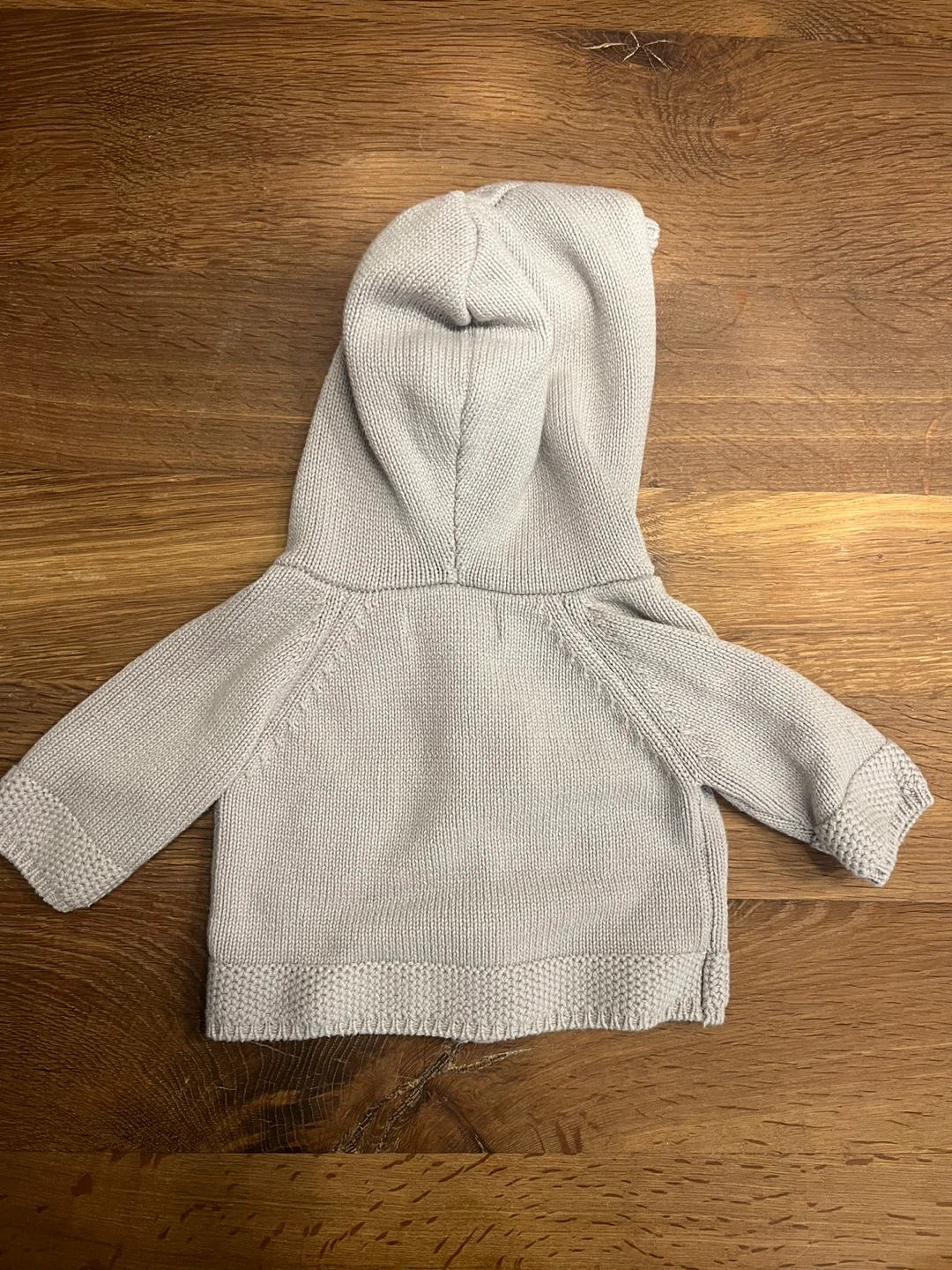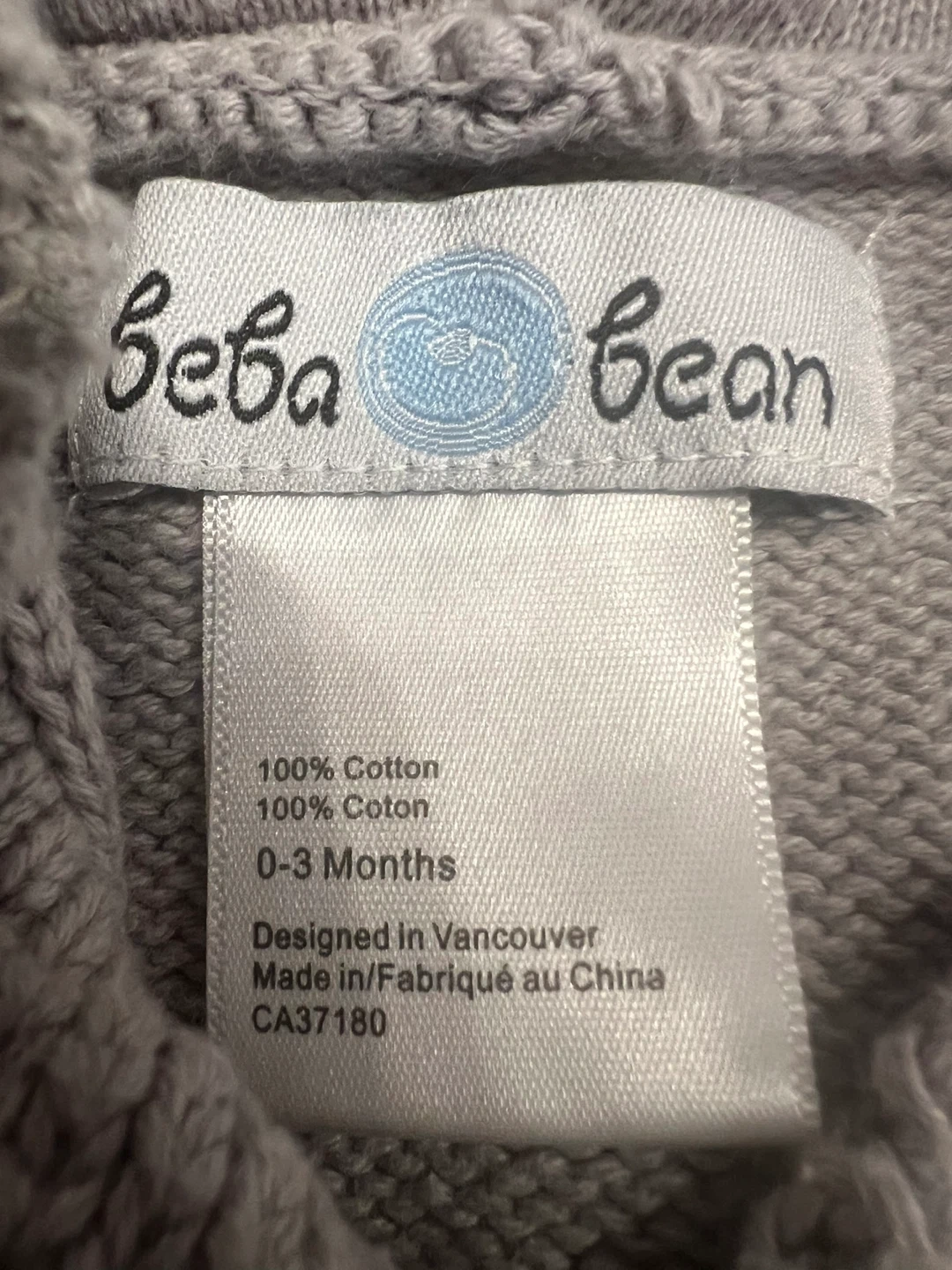 Super cute pre-loved Beba Bean knit hoodie for your little one! This cozy sweater is made from 100% cotton and is perfect for babies aged 0-3 months. The soft grey colour is adorable and versatile for any outfit. Designed in Vancouver!
