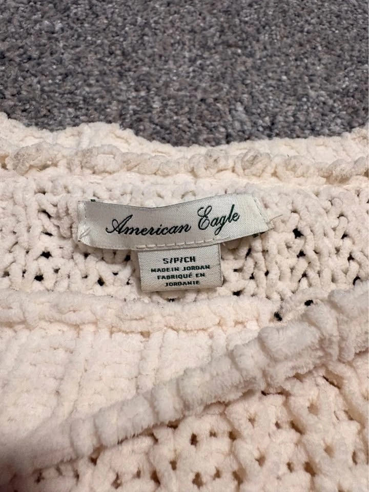 Buy & SellAmerican Eagle White Off The Shoulder Knit SweaterAmerican Eagle White Off The Shoulder Knit Sweater$40Size Small, Oversized fit. Cash only.WHERE TO MEETCheck LocationView MapSELLERSammieLatoria00 reviews0 chats·0 favorites·0 viewsSEND CHAT TO SELLERHi Sammie! I’m interested in your listing.Hi Sammie! I’m interested in your listing.Get the Karrot app to chatSign In to chat