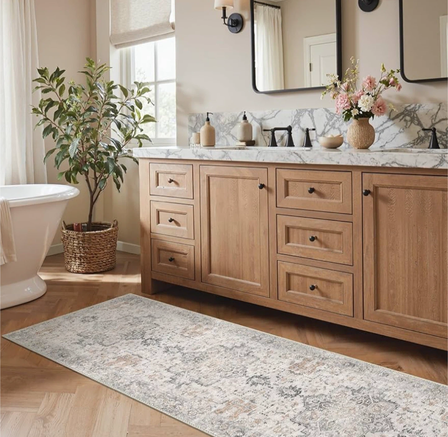 Soft & Well Designed: This area rug captures the opulence of vintage design with intricate floral patterns in harmonious shades. Made from high-quality low pile soft fibers, it provids a certain degree of cushioning for the feet. This vintage rug skillfully captures a blend of classic, modern, boho, faded, delivering not just striking design but also a sumptuously soft texture. The pattern and color vividly match the images, with consistent coloring throughout the entire piece.