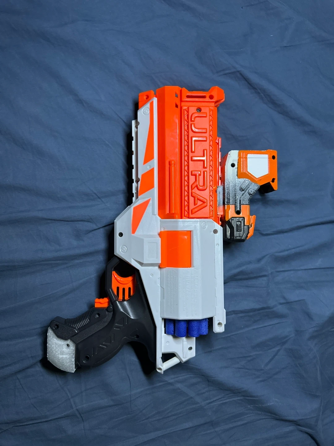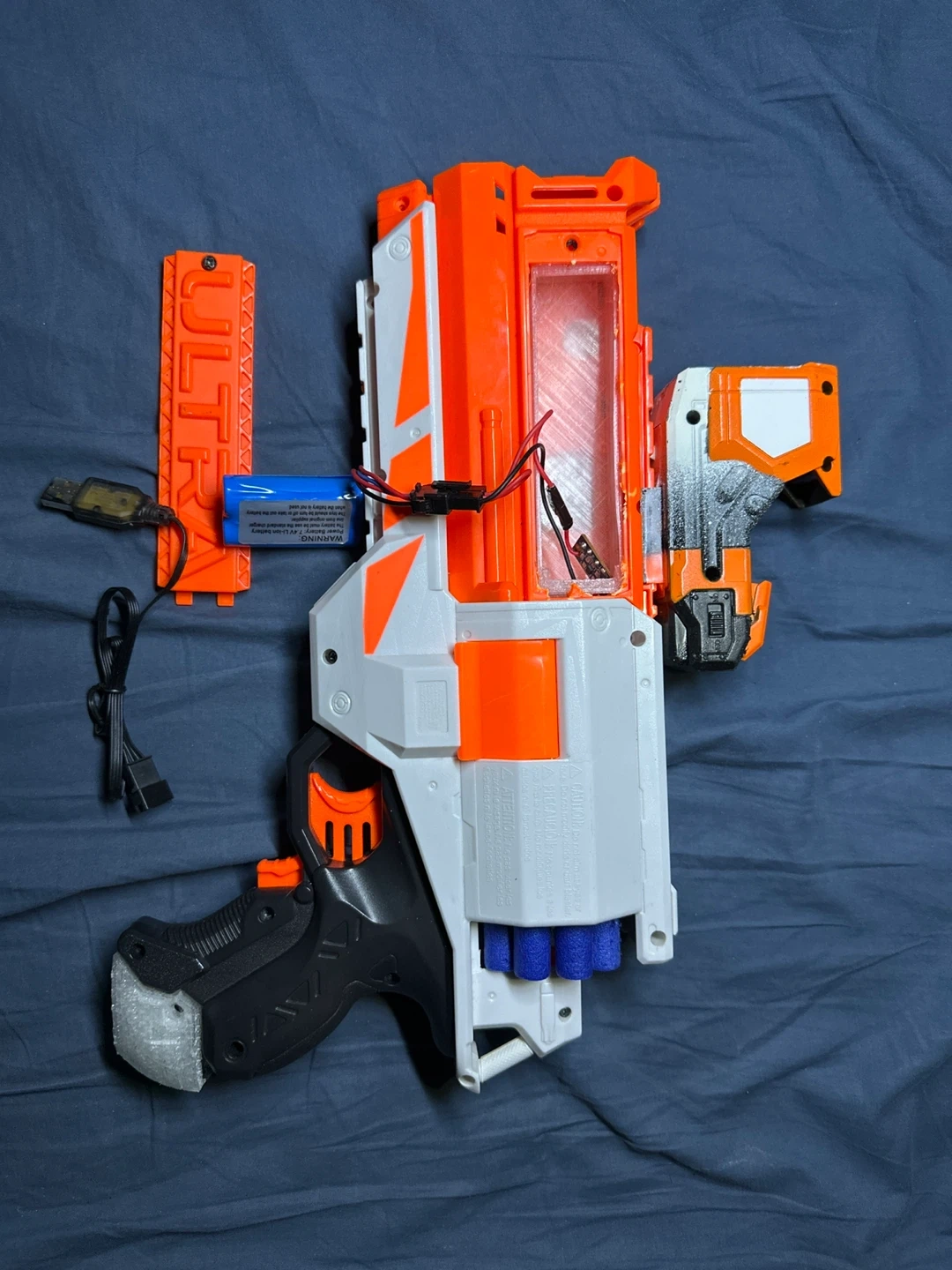 Nodded to take nerd elite darts. Comes with 9 darts, rechargeable battery, nerf scope and the charger