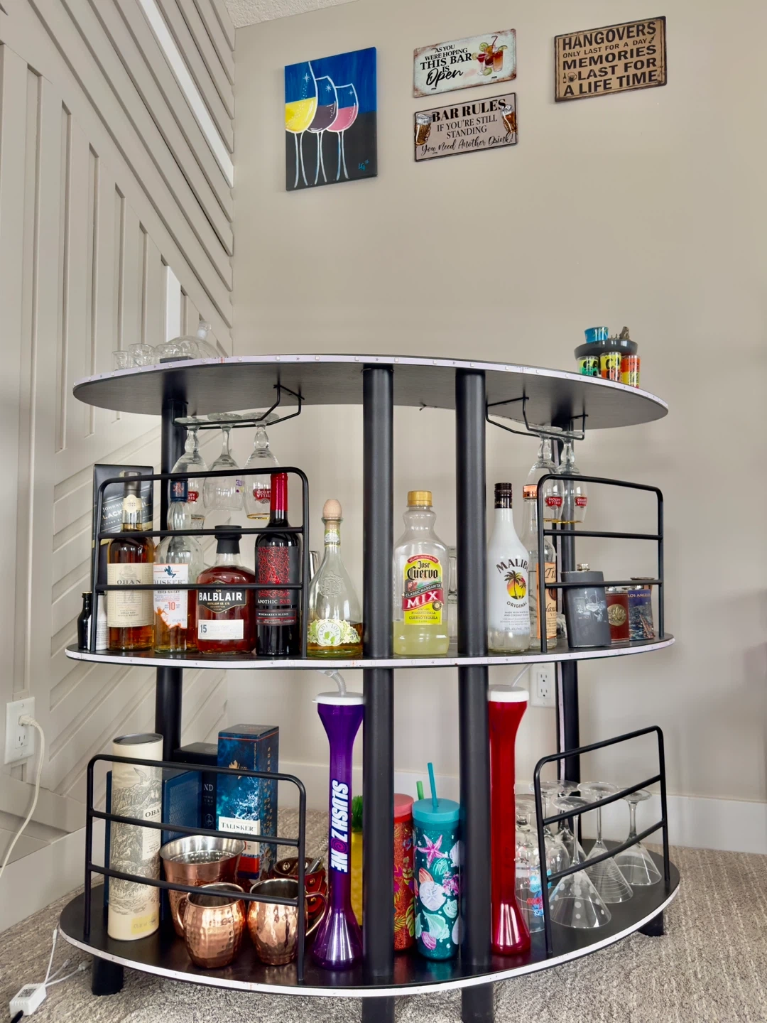 Modern multi-level bar with built-in LED lighting that creates an amazing night-time vibe. Perfect for entertaining guests or upgrading your home bar setup. Stylish, compact, and eye-catching β a true statement piece!