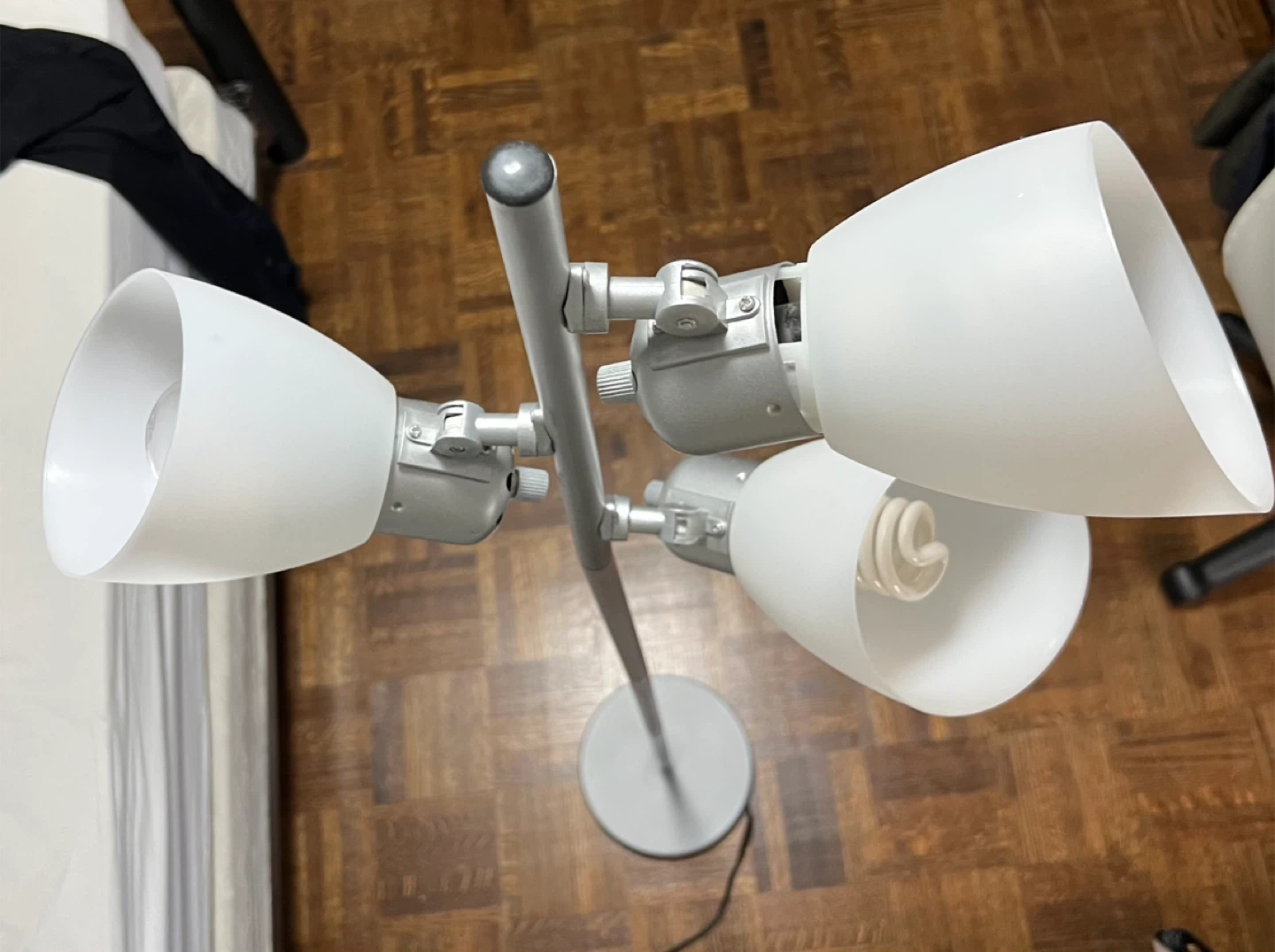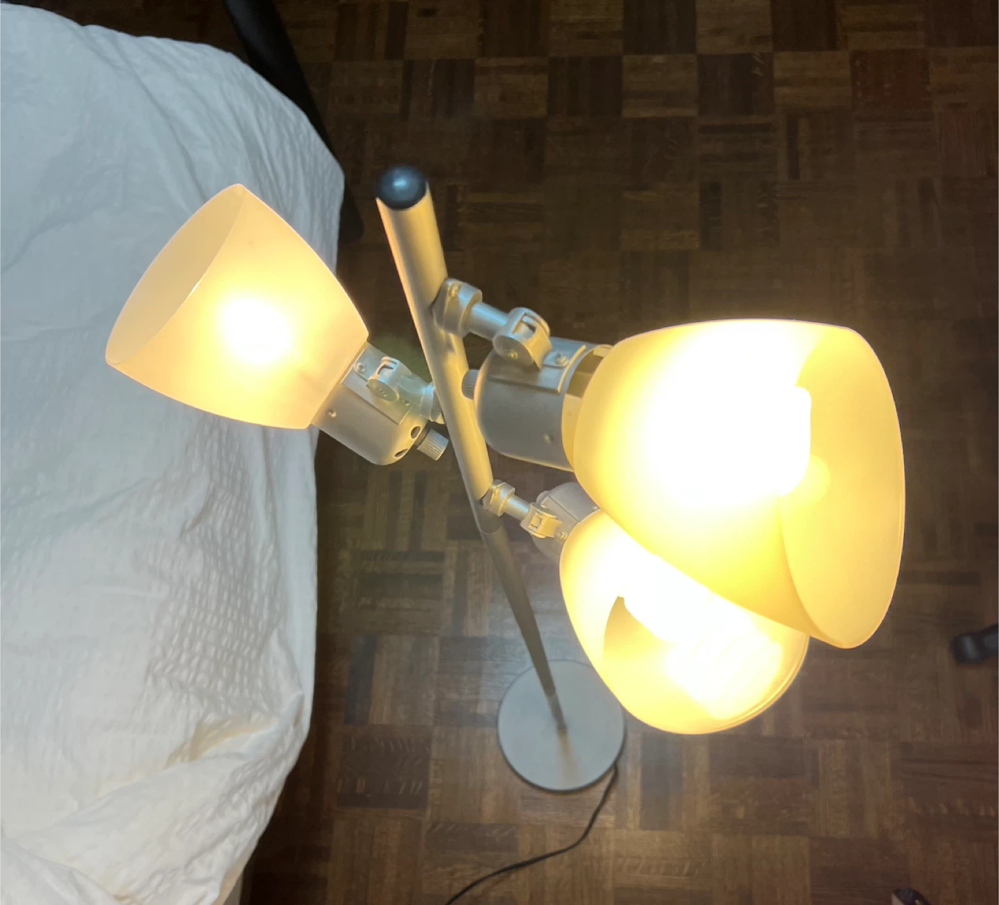 Selling a floor lamp with three adjustable lights! It's in great shape and provides plenty of light for any room. The lights can be adjusted to point in different directions, making it perfect for reading, working, or just adding some ambiance to your space