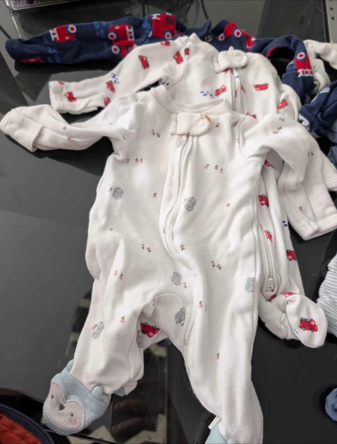 7 footed sleepers with two way zippers. Carter's.