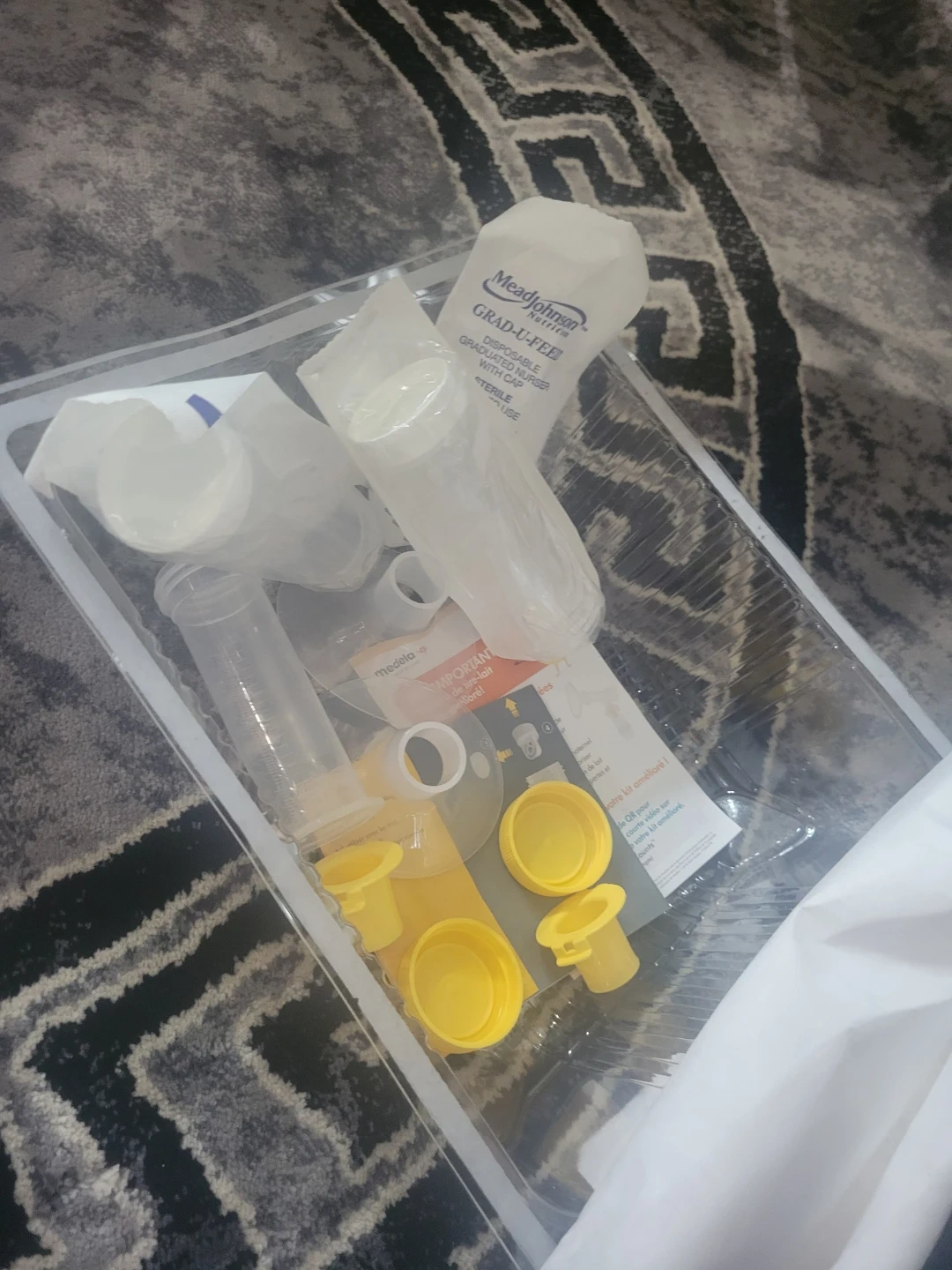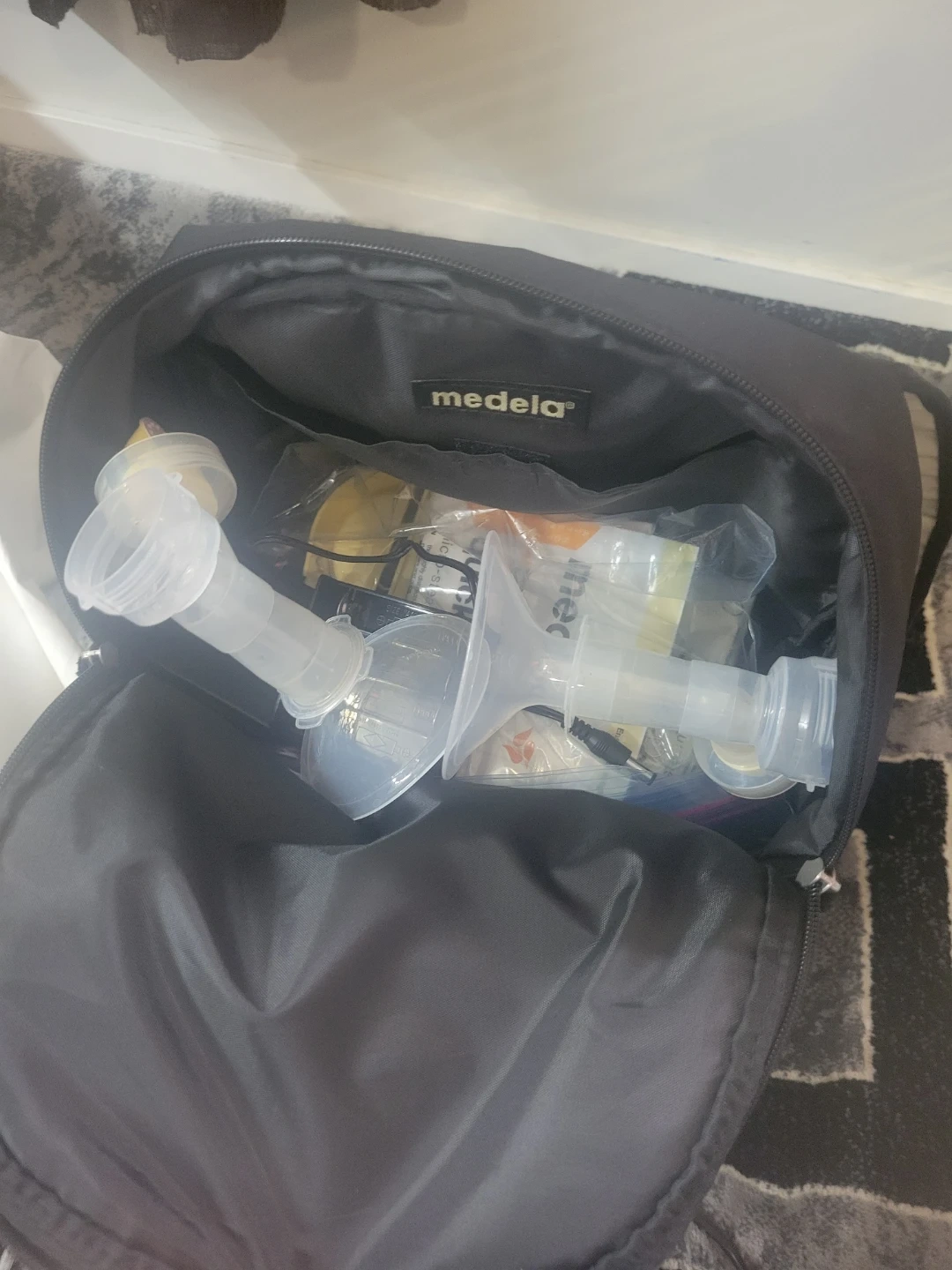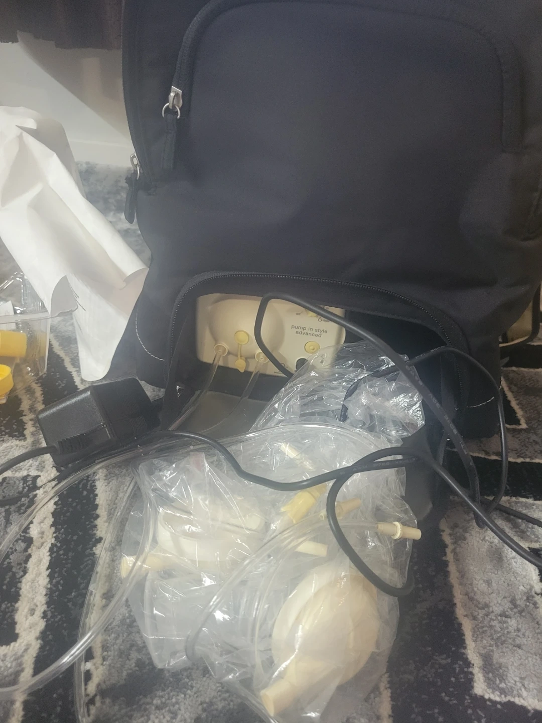 This is a Medela Pump in Style Advanced breast pump kit. It comes with all the components shown in the images, including the pump motor, tubing, and collection bottles. Great for pumping on the go!
