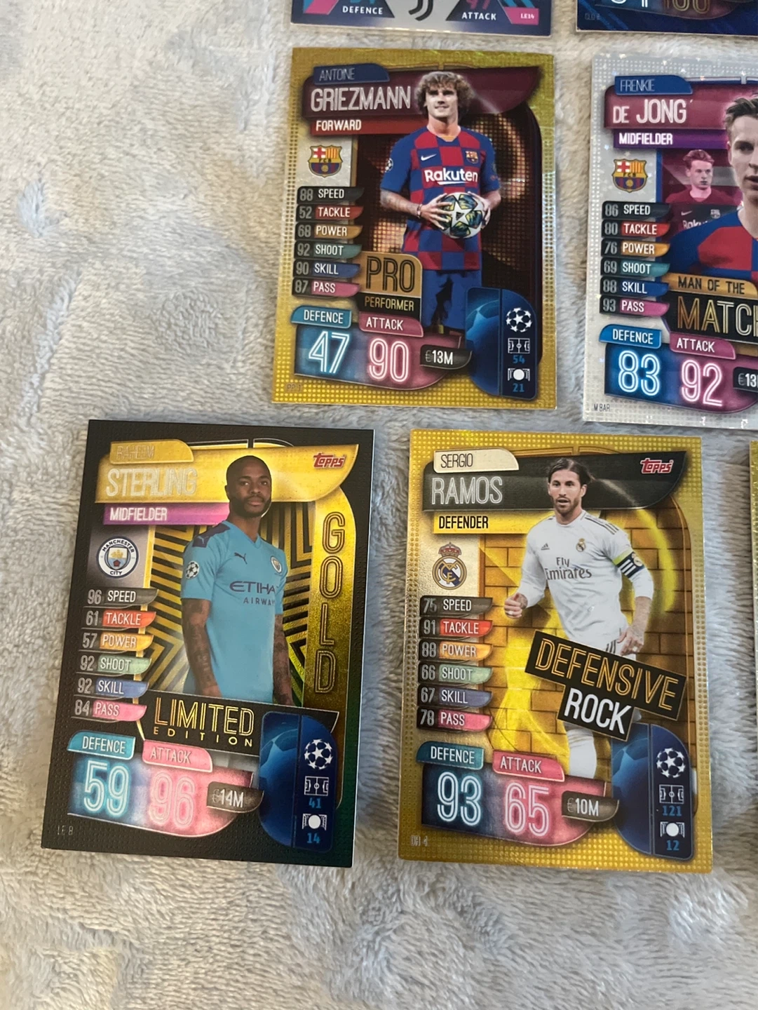 Collection of Topps football trading cards featuring various players. Includes limited edition and man of the match cards. Also sell individually. All card have whitening. Some barely and some yes.