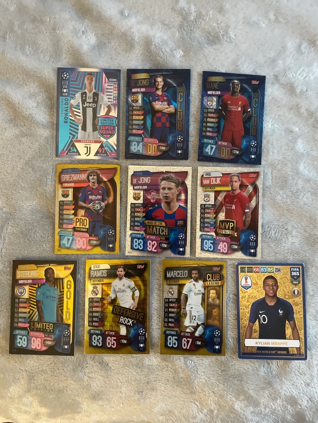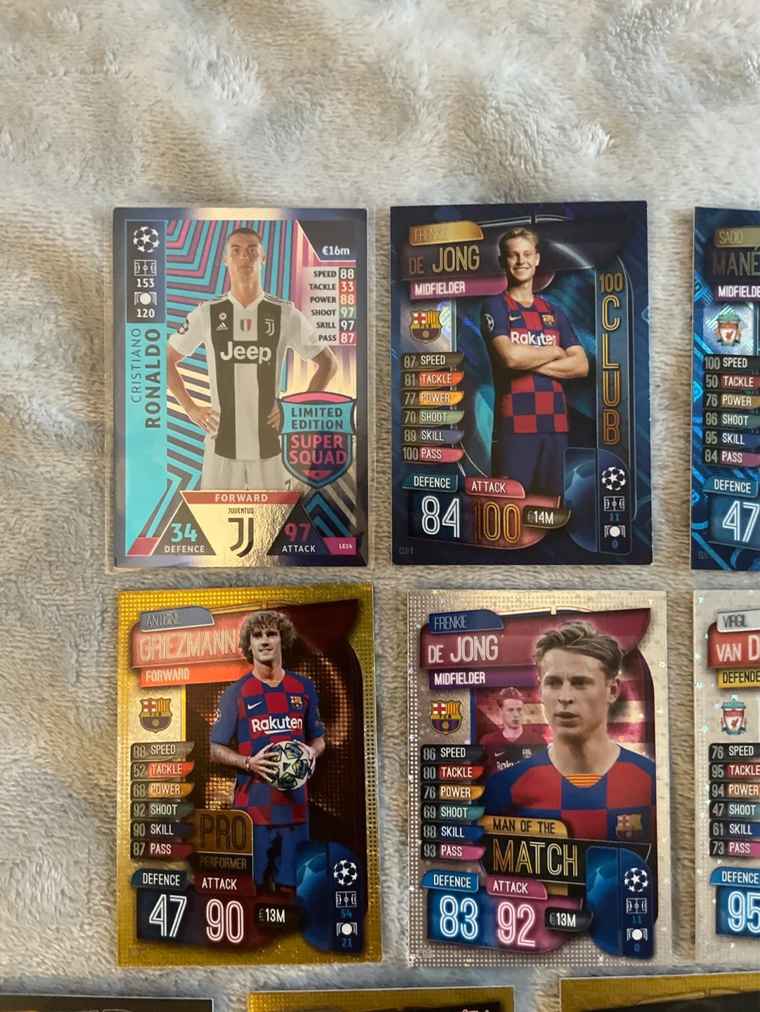Collection of Topps football trading cards featuring various players. Includes limited edition and man of the match cards. Also sell individually. All card have whitening. Some barely and some yes.