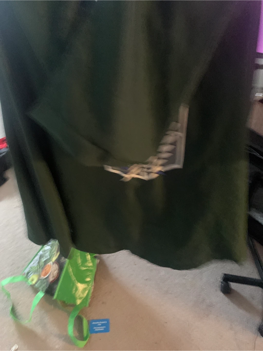 Green hooded cloak with the Survey Corps wings emblem. Fastens with a simple clasp at the neck. Great for conventions or costume parties!