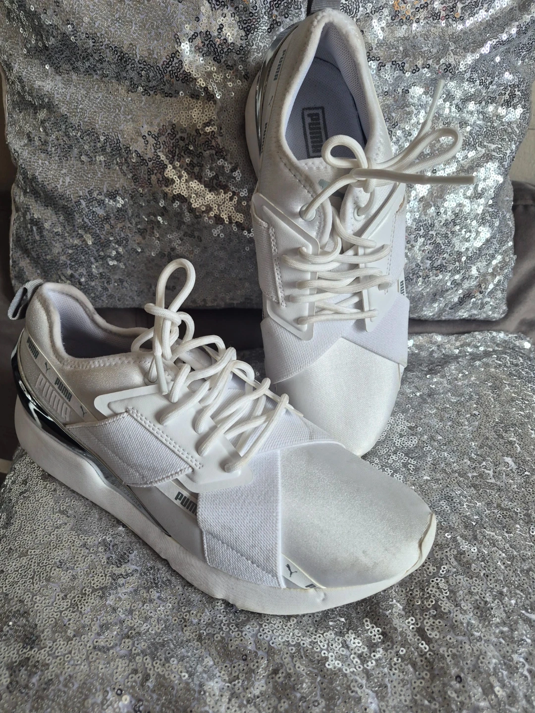 Buy & SellPuma White Athletic ShoesPuma White Athletic Shoes$11These are white Puma athletic shoes. They're made with textile and synthetic materials. A great pair for everyday wear!Size8.5BrandPumaWHERE TO MEETCheck LocationView MapSELLERTeeMimico100 reviews0 chats·0 favorites·12 viewsSEND CHAT TO SELLERHi Tee! I’m interested in your listing.Hi Tee! I’m interested in your listing.Get the Karrot app to chatSign In to chat