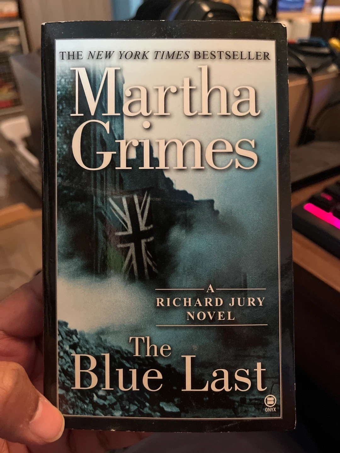 Selling a copy of "The Blue Last" by Martha Grimes, a New York Times Bestseller and a Richard Jury novel. It's an Onyx edition.