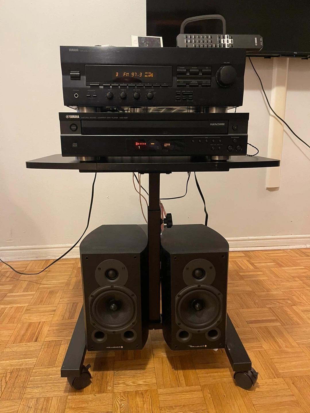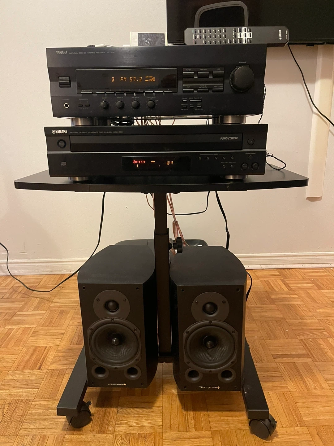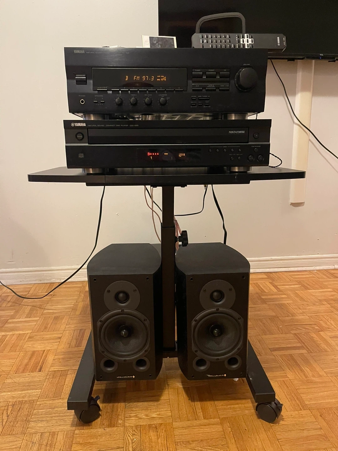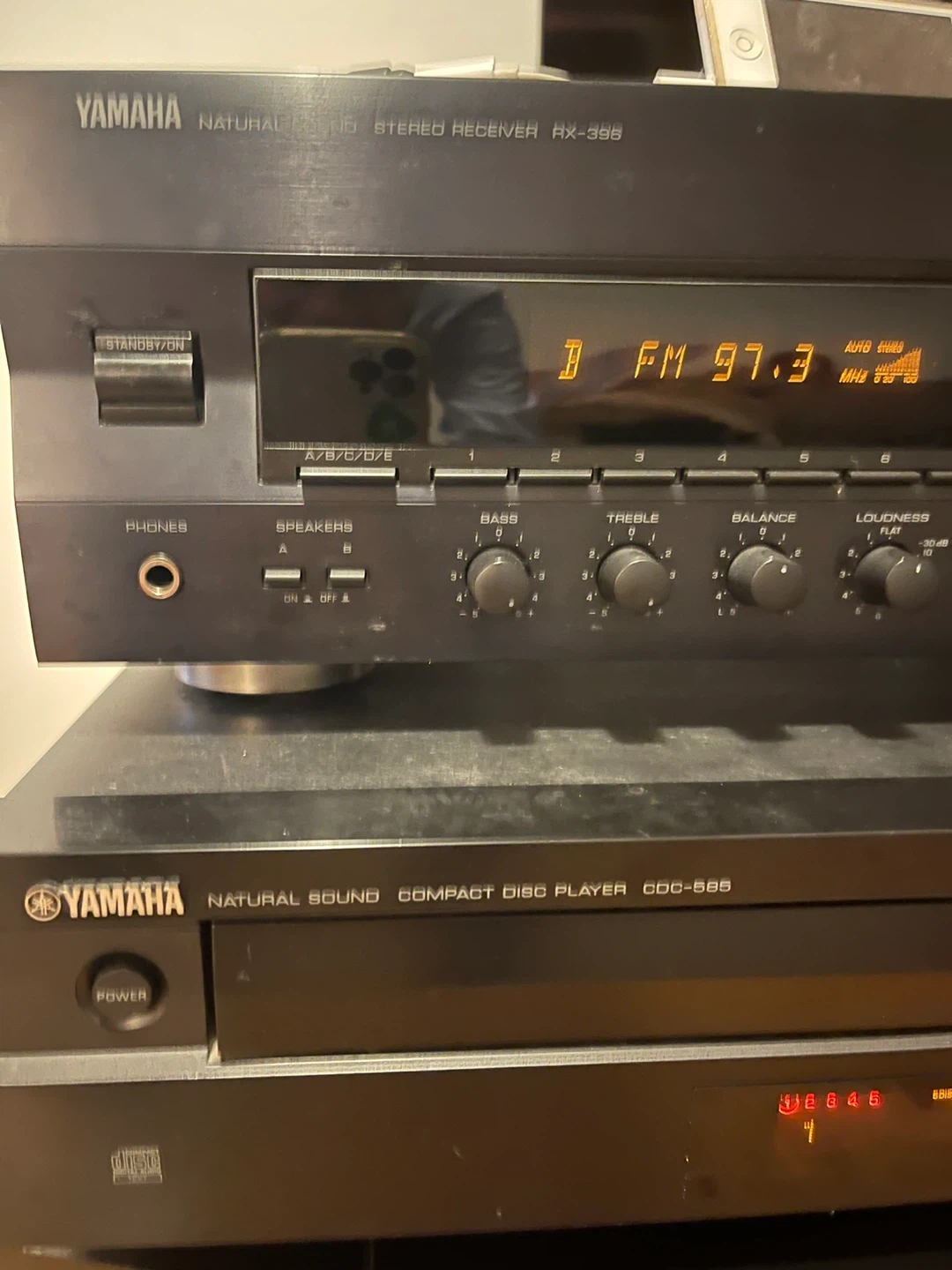 Selling a Yamaha Natural Sound stereo receiver RX-396 and a natural sound compact disc player CDC-565. They are in good working condition and come with a remote. Perfect for someone looking to upgrade their audio setup! FREE STAND UNIT is all to gather thanks
