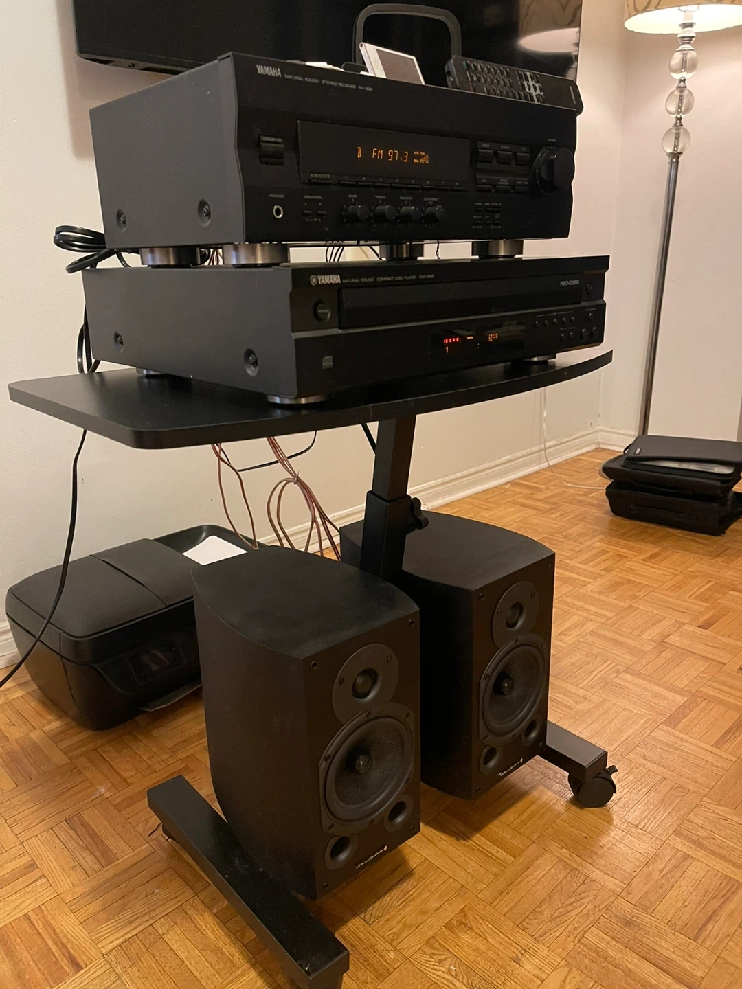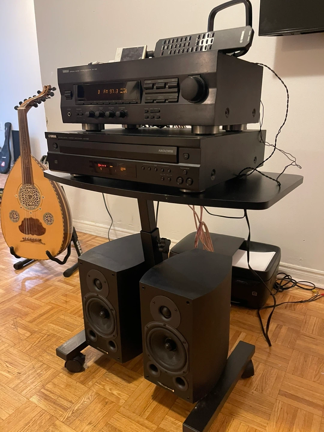 Selling a Yamaha Natural Sound stereo receiver RX-396 and a natural sound compact disc player CDC-565. They are in good working condition and come with a remote. Perfect for someone looking to upgrade their audio setup! FREE STAND UNIT is all to gather thanks
