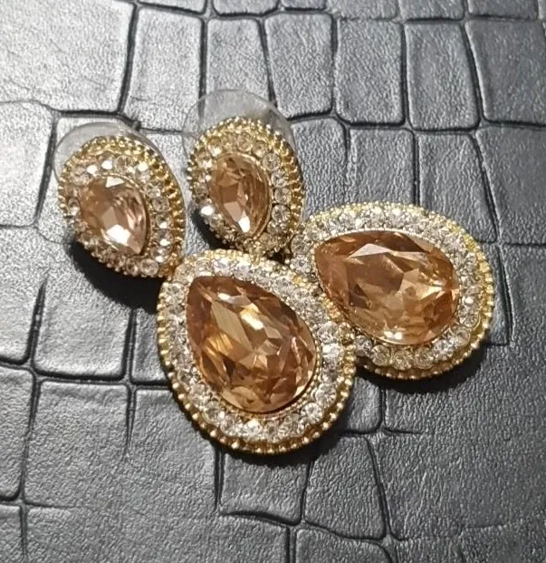 These beautiful earrings feature a teardrop design surrounded by sparkling rhinestones, perfect for adding a touch of glamour to any outfit