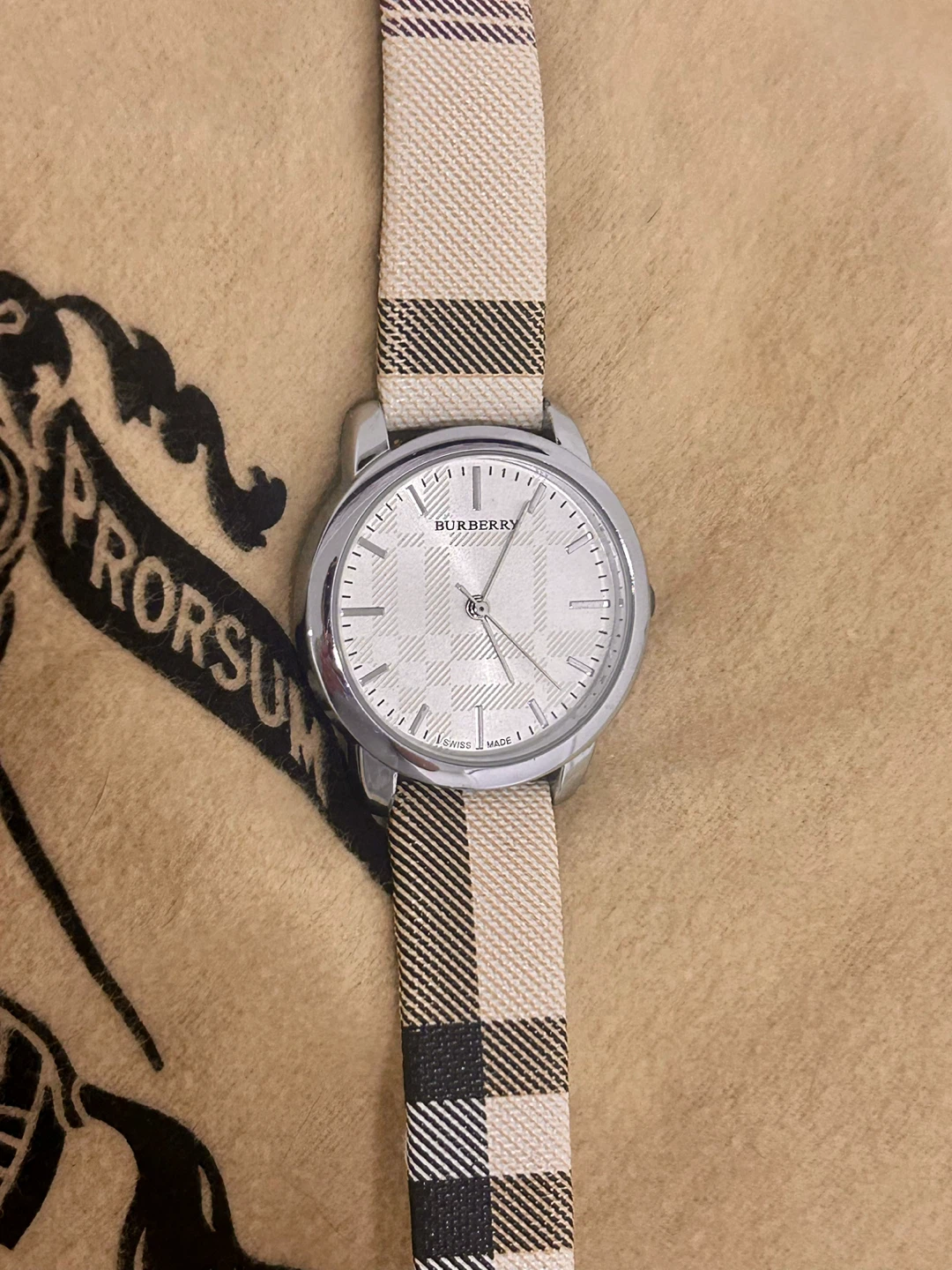 Selling a Burberry watch! It has a stainless steel back , water resistant genuine leather strap. Marked Burberry on leather strap. Burberry logo on back of watch and serial number. I only selling as it’s for lower price as I never wear watches .I got it as a gift , too gorgeous to not to be worn .also to spread kindness for someone who will appreciate it
