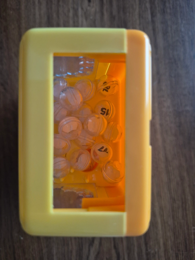 Adorable mini capsule machine that works just like the real thing — insert a token, twist, and a ball with a number pops out! Includes small balls, so not suitable for children under 5. Everything works well, though a few numbered balls are missing.
