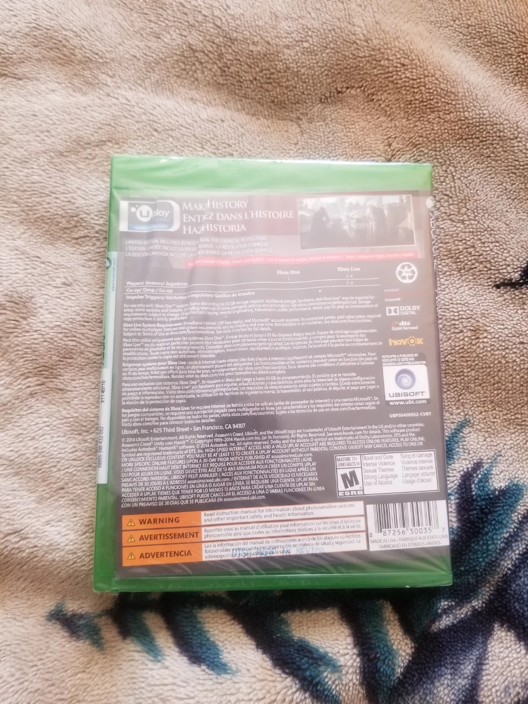Assassin's Creed Unity Limited Edition for Xbox One. Comes factory sealed in its original plastic wrap. This game is rated M for Mature 17+ by the ESRB. Completely Brand New Sealed Asking $15 for it