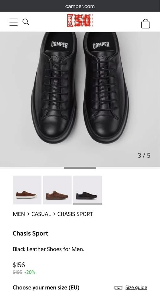 Buy & SellChasis Sport Leather Shoes for MenChasis Sport Leather Shoes for Men$60Beautiful, super comfy, bought it for myself, but actually not my size (its 39 men, for women its 39-40 I guess, 26 cm), so never worn.WHERE TO MEETCheck LocationView MapSELLERverifiedKarineDowntown1335 reviews1 chats·0 favorites·24 viewsSEND CHAT TO SELLERHi Karine! I’m interested in your listing.Hi Karine! I’m interested in your listing.Get the Karrot app to chatSign In to chat