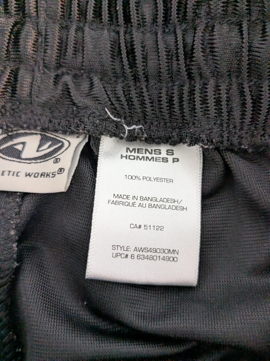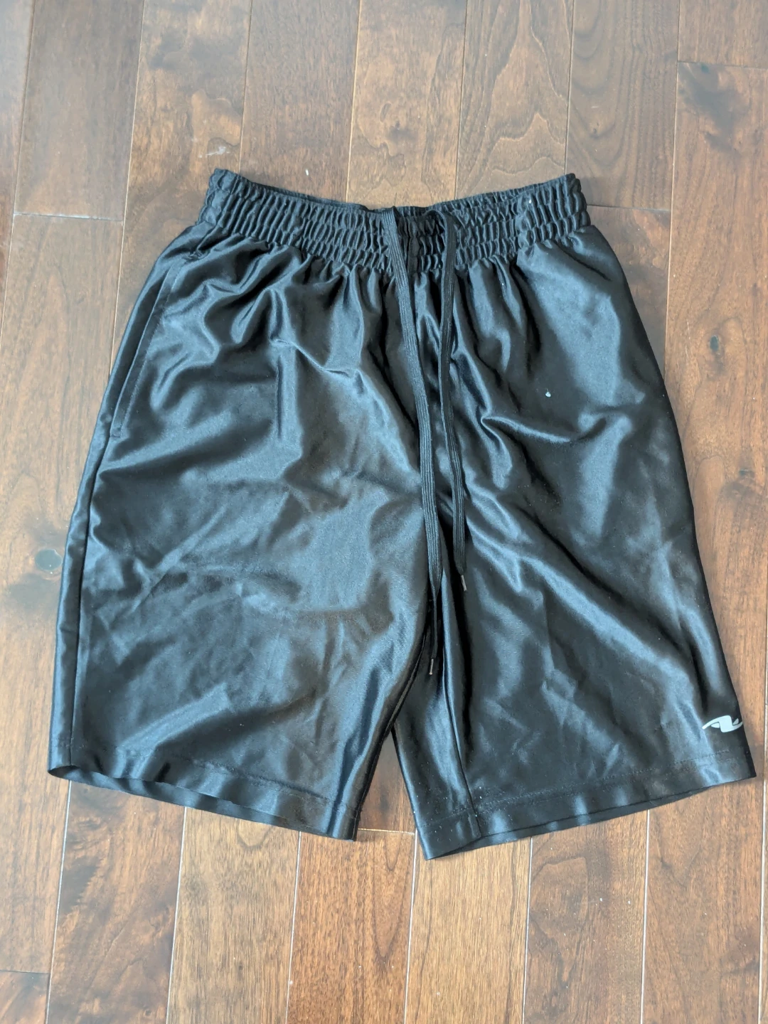 Selling a pair of black Athletic Works shorts. They're made of 100% polyester. These shorts are size small. The condition is excellent - no stains, tears, holes.