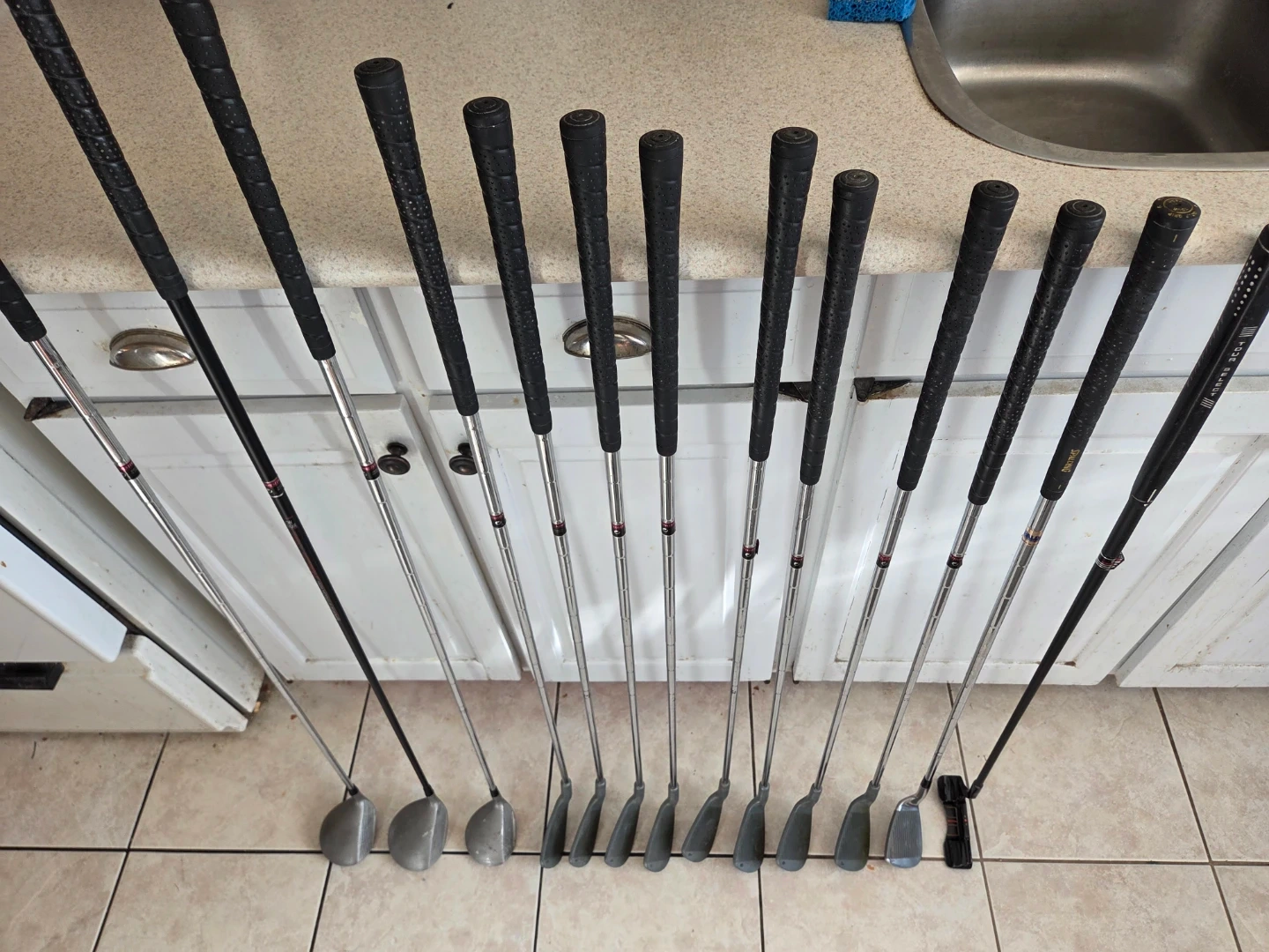 Selling old set of right hand Northwestern. 1,3,5 drivers & 3-9 irons, sand and pitching wedges, putter, 4 more driving irons and a crappy bag with balls and tees hidden inside.