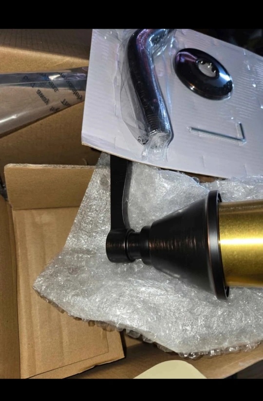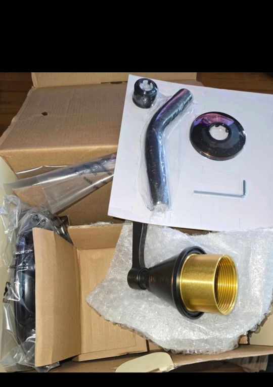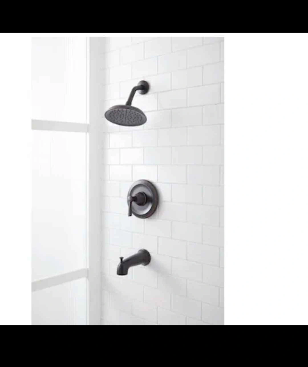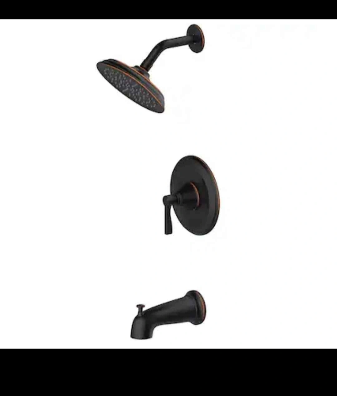 Shower faucet set. Oil-rubbed bronze finish. Includes shower head, faucet, and handles. Ceramic disc cartridge. A nice warm shower is always a great way to end a long day.