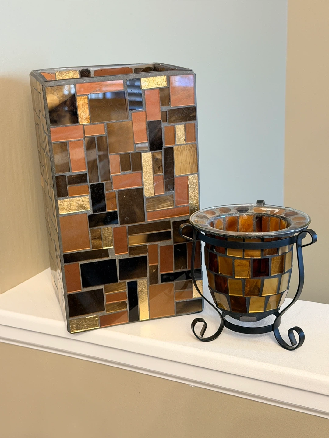 ✨ Large Rectangular Vase + Votive Holder – Matching Set (Brown Tones) ✨