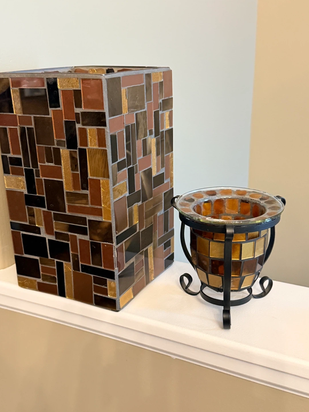 ✨ Large Rectangular Vase + Votive Holder – Matching Set (Brown Tones) ✨