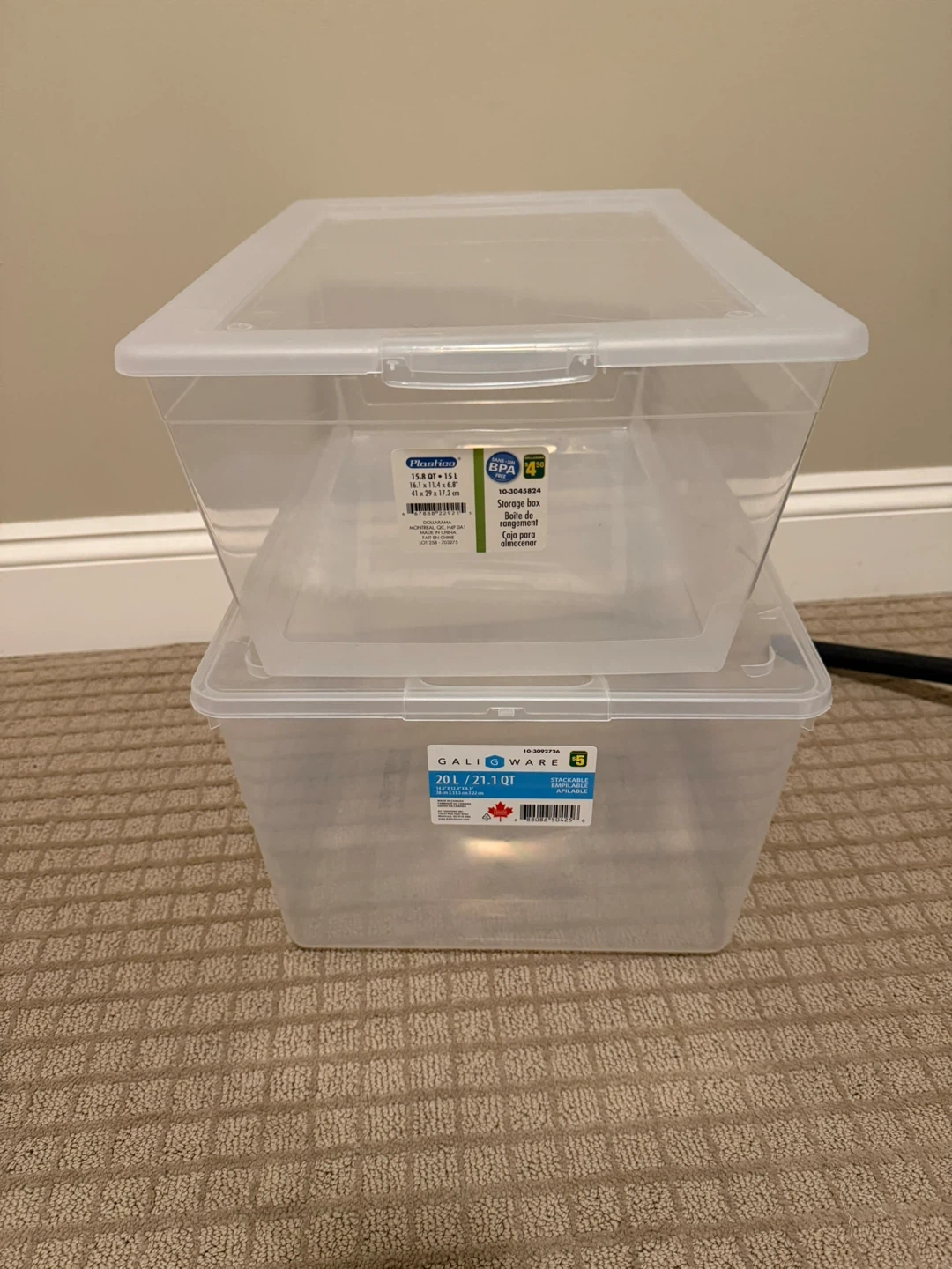 Never used these storage boxes got it from dollar store the price for both was $10 without tax.. I am selling it for 6$ the price is actually good.. its new and never used got them 1 week ago. Dm me if interested will let you know where to pick up from.
