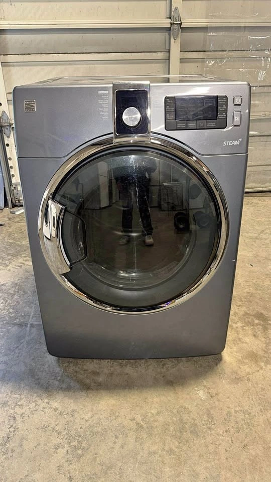 Great Kenmore Elite gray clothes dryer. Has steam function for easy wrinkle release. This electric dryer is 120V/240V and uses 3 or 4 wire setup. Model number 592-89006 01. Has a few small scuffs on the side, otherwise in good shape.