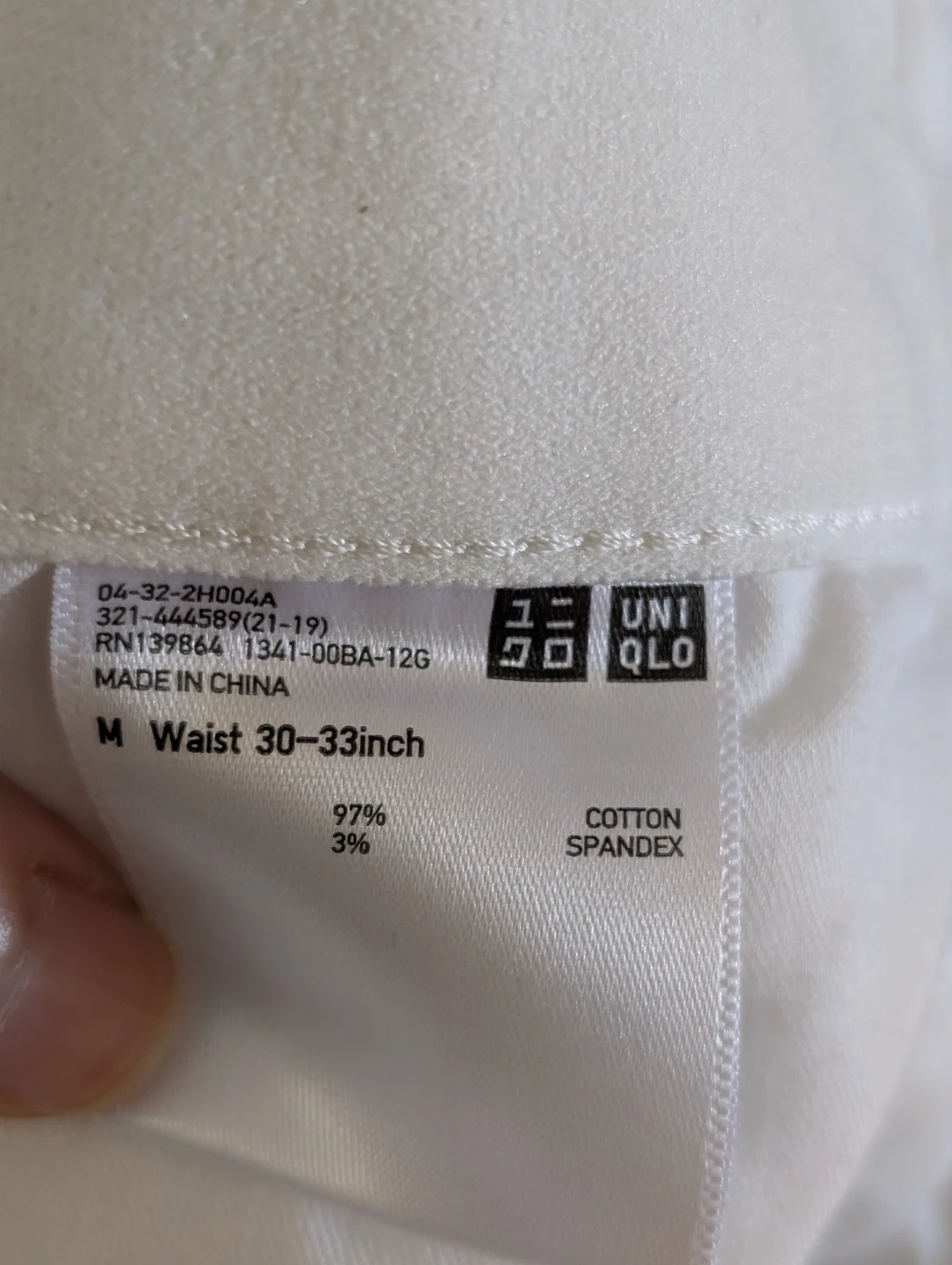 These are Uniqlo women's skinny jeans in a size medium. They're made from a blend of 97% cotton and 3% spandex for ultra stretch comfort. The fit is skinny with a tapered leg and middle rise.