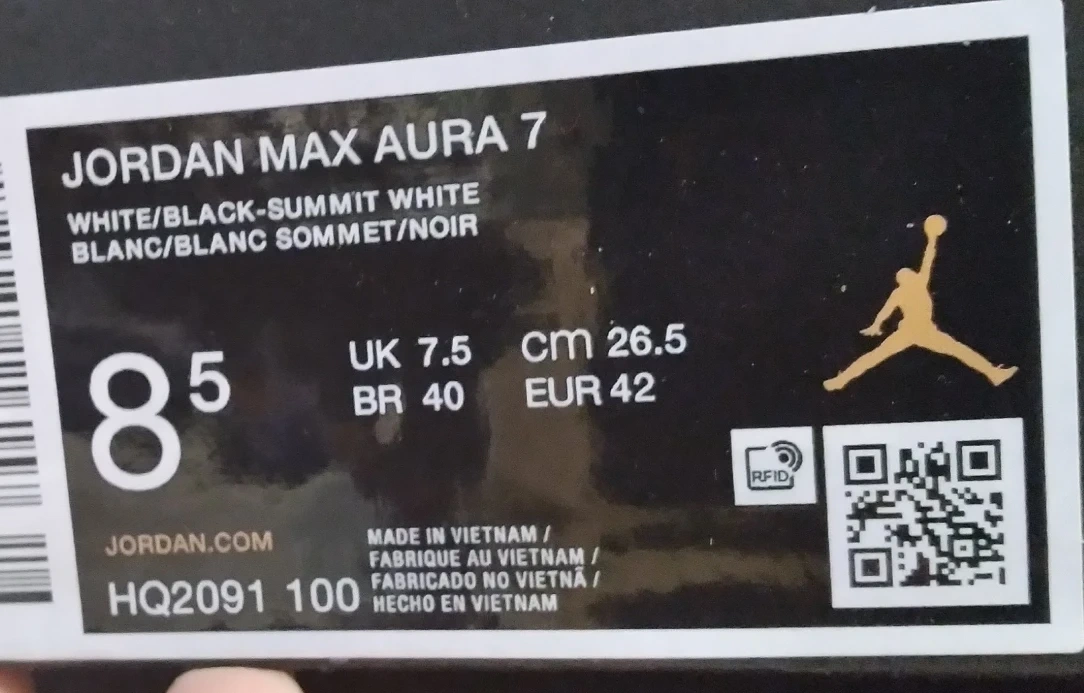 Selling a brand new pair of Jordan Max Aura 7 sneakers in size 8.5! These are in the white and black colourway and have never been worn. Comes with the original box!